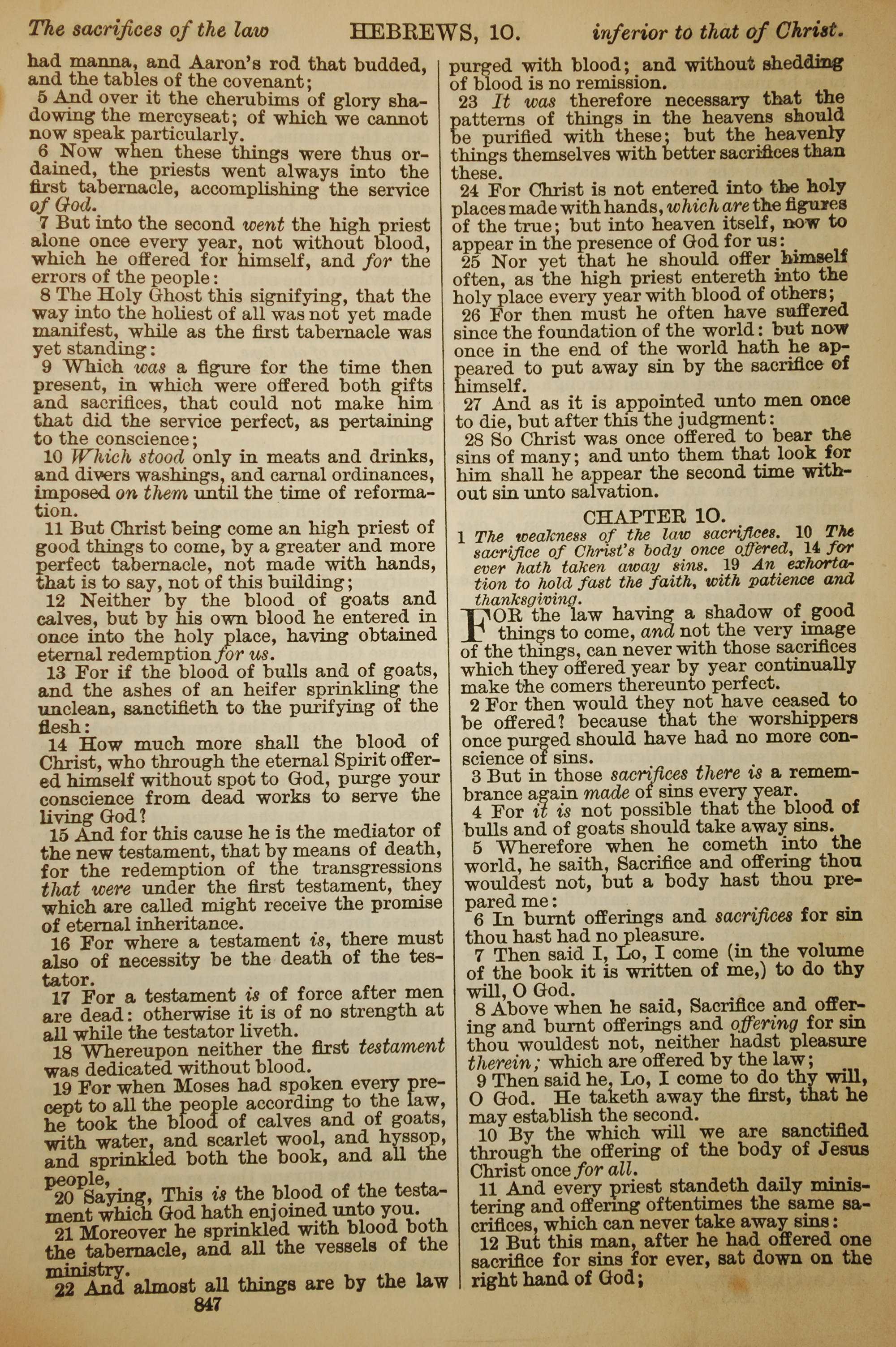 1886年英文聖經 希伯來書 9 章 5 節到 10 章 12 節