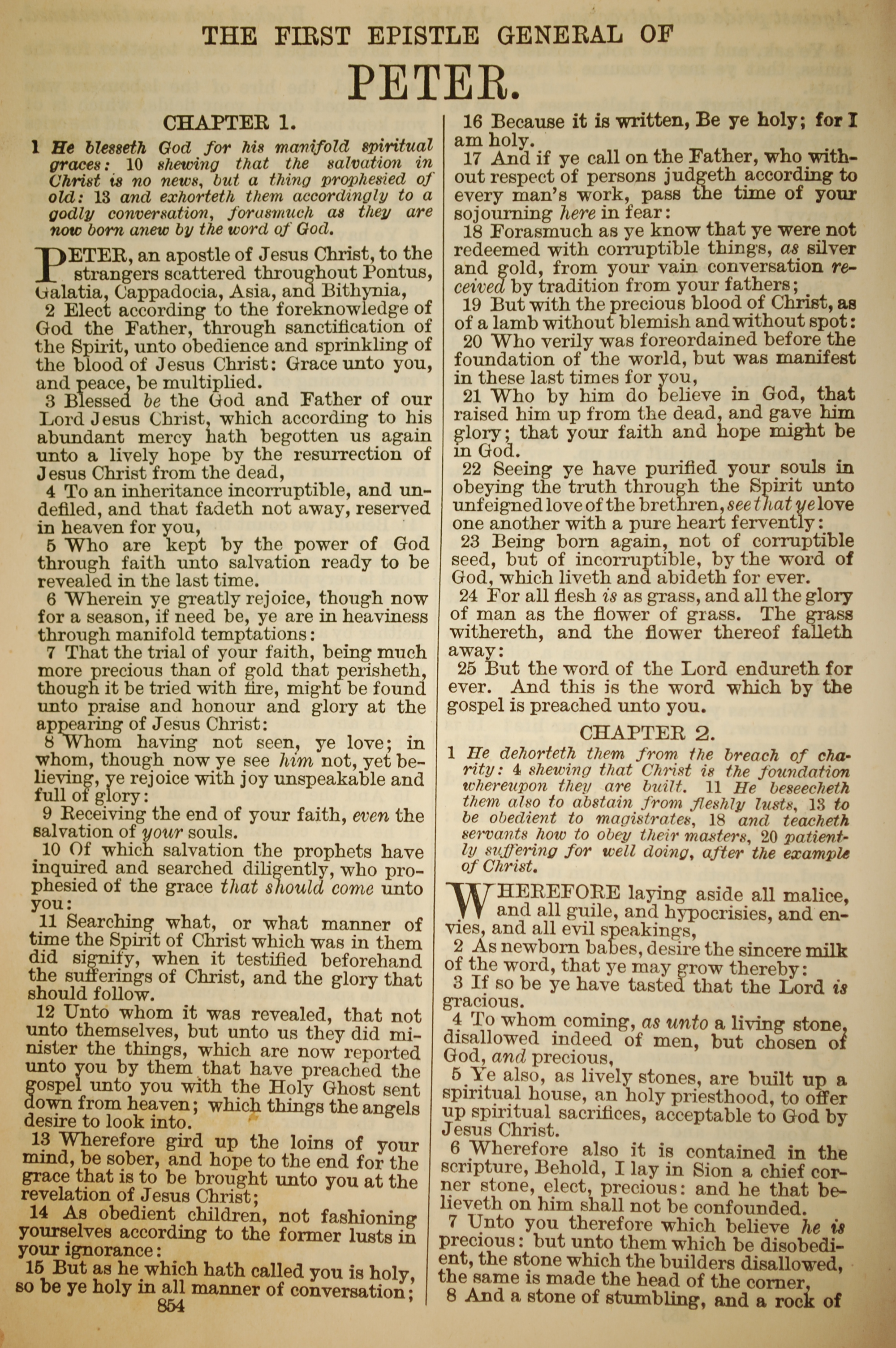 1886年英文聖經 彼得前書 1 章 1 節到 2 章 8 節