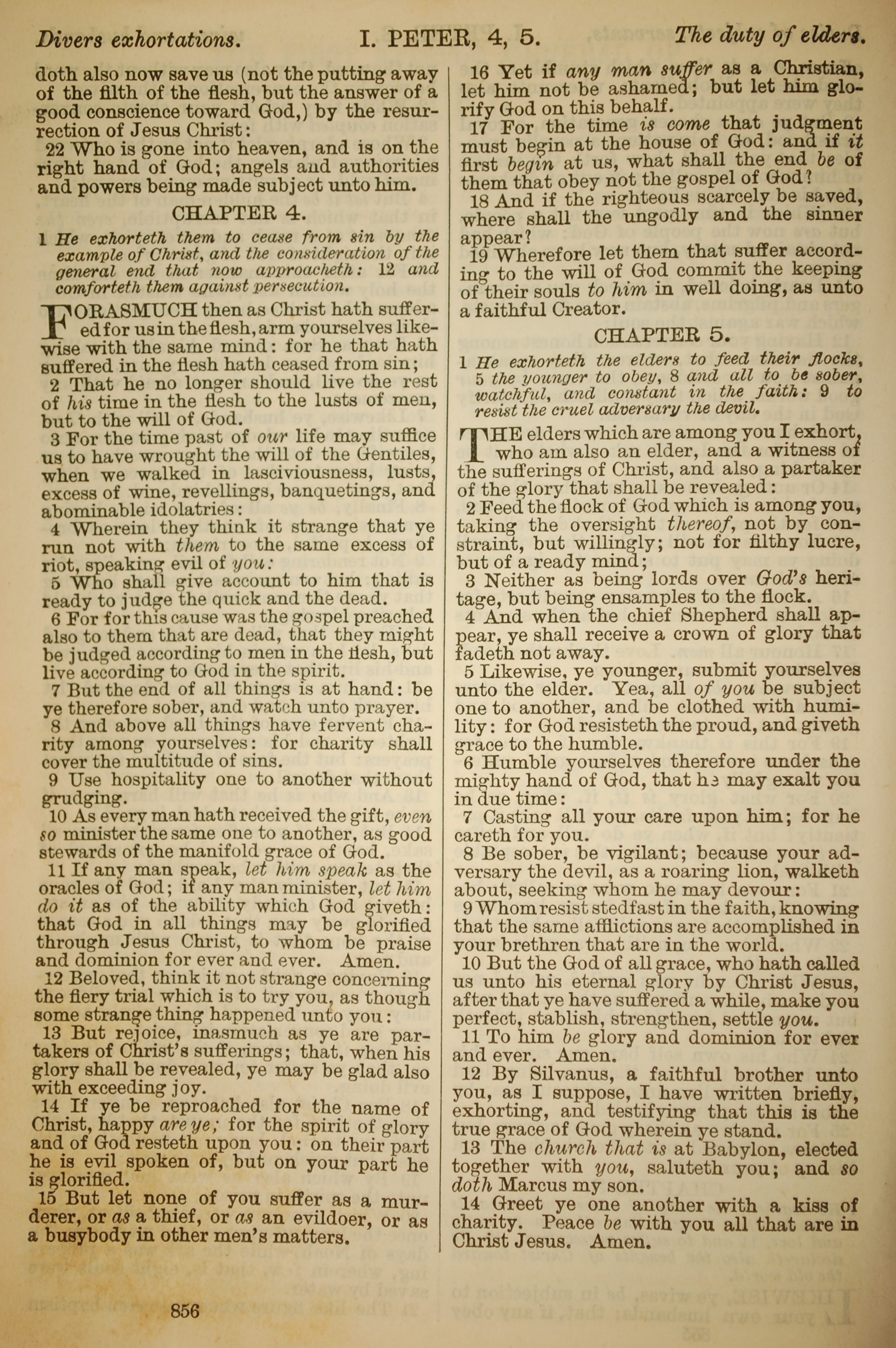 1886年英文聖經 彼得前書 3 章 22 節到 5 章 14 節