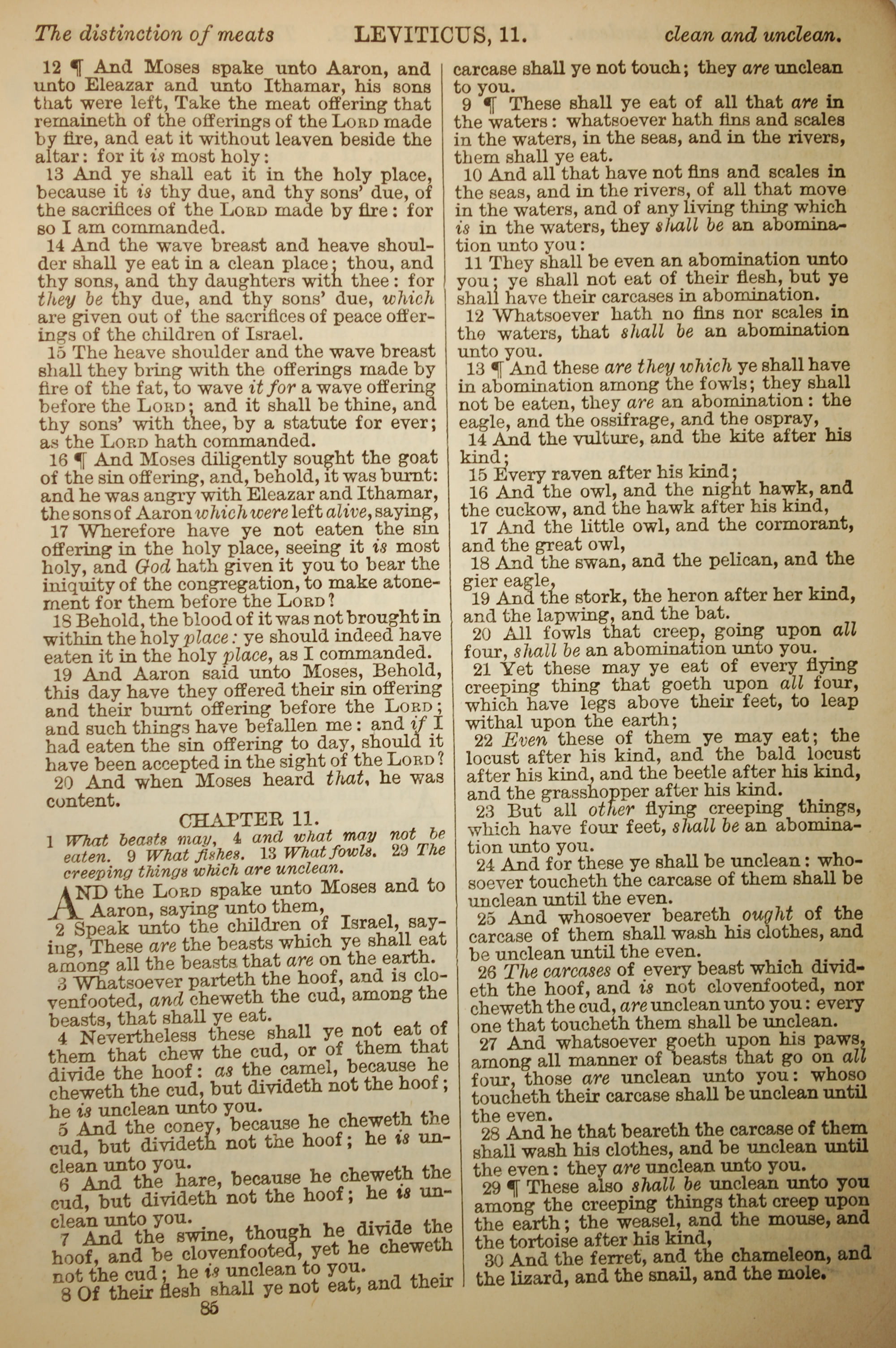 1886年英文聖經 利未記 10 章 12 節到 11 章 30 節