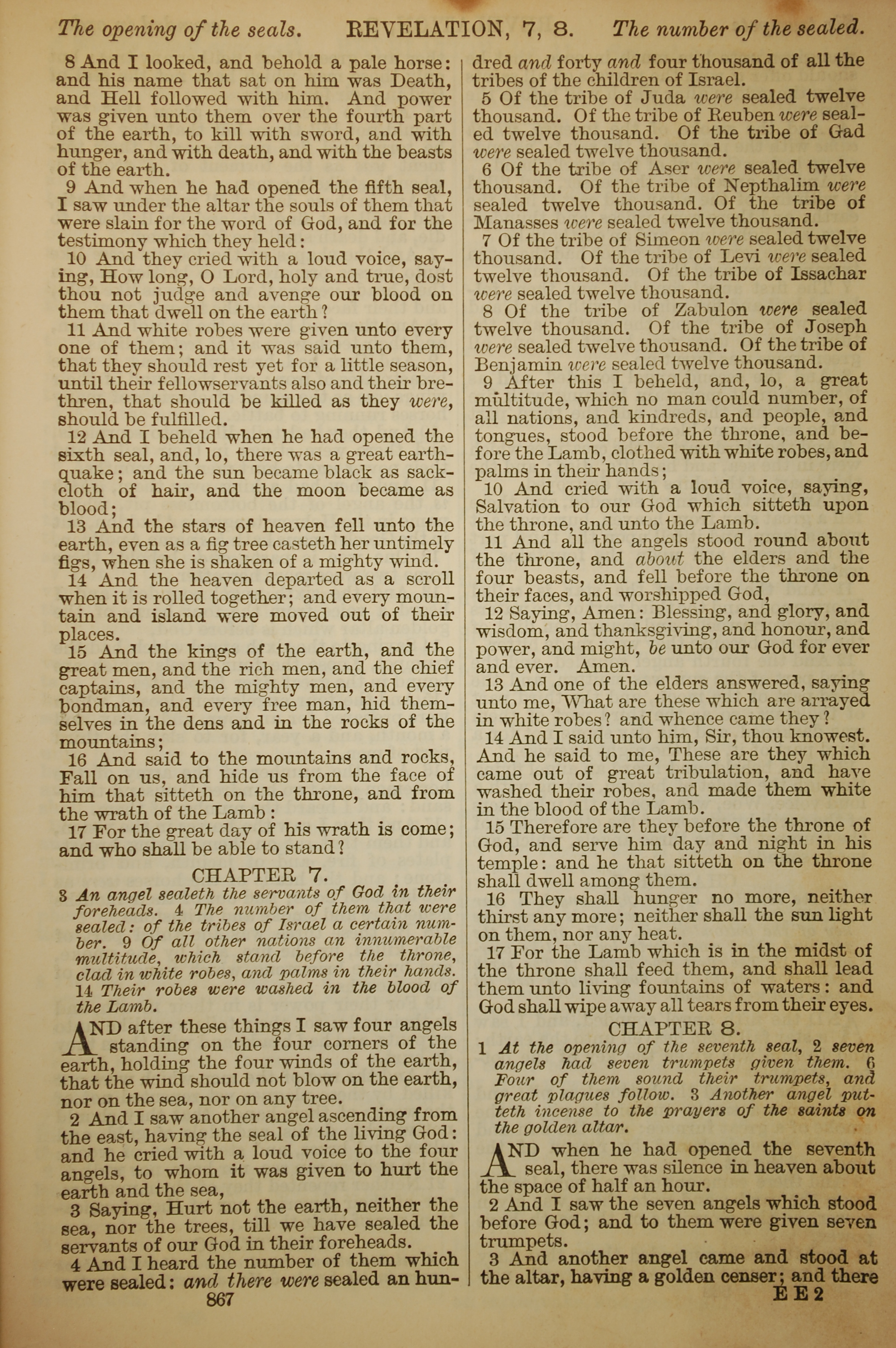 1886年英文聖經 啟示錄 6 章 8 節到 8 章 3 節