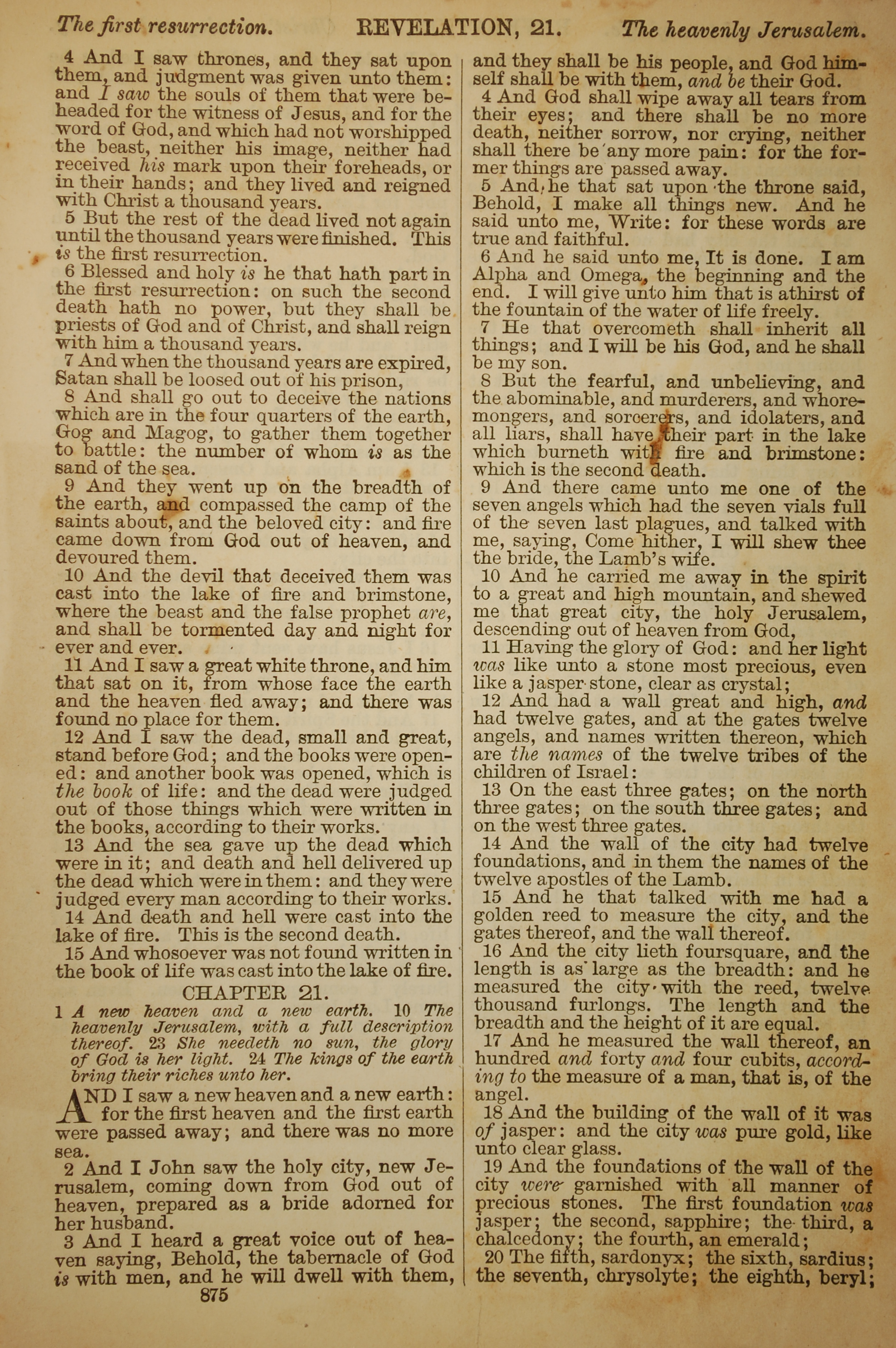 1886年英文聖經 啟示錄 20 章 4 節到 21 章 20 節