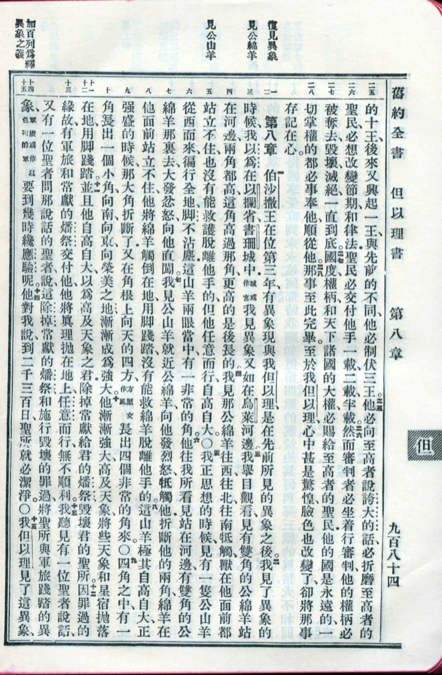 1959年新舊約全書 但以理書 27 章 25 節到 8 章 15 節