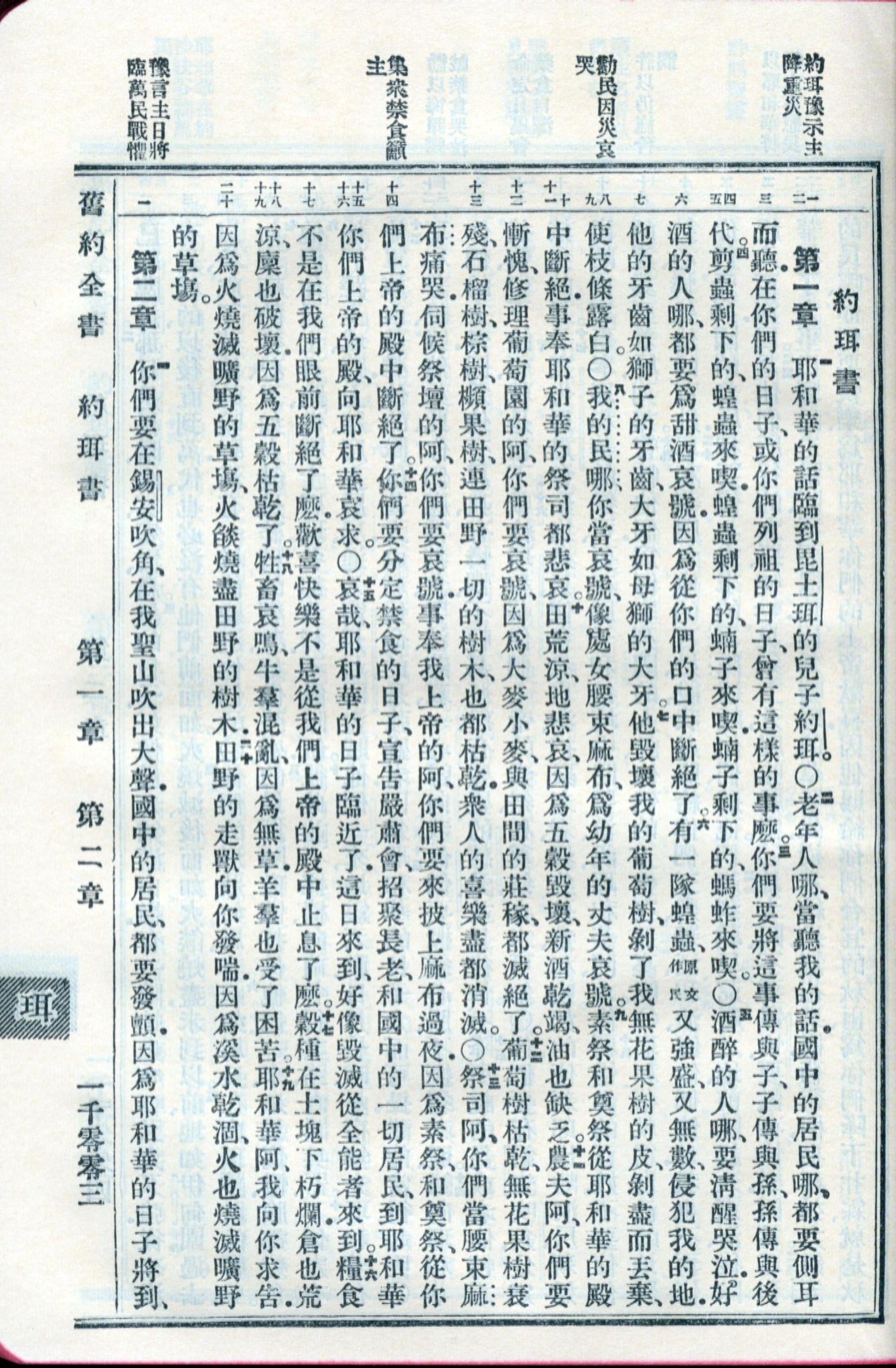 1959年新舊約全書 約珥書 1 章 1 節到 2 章 1 節