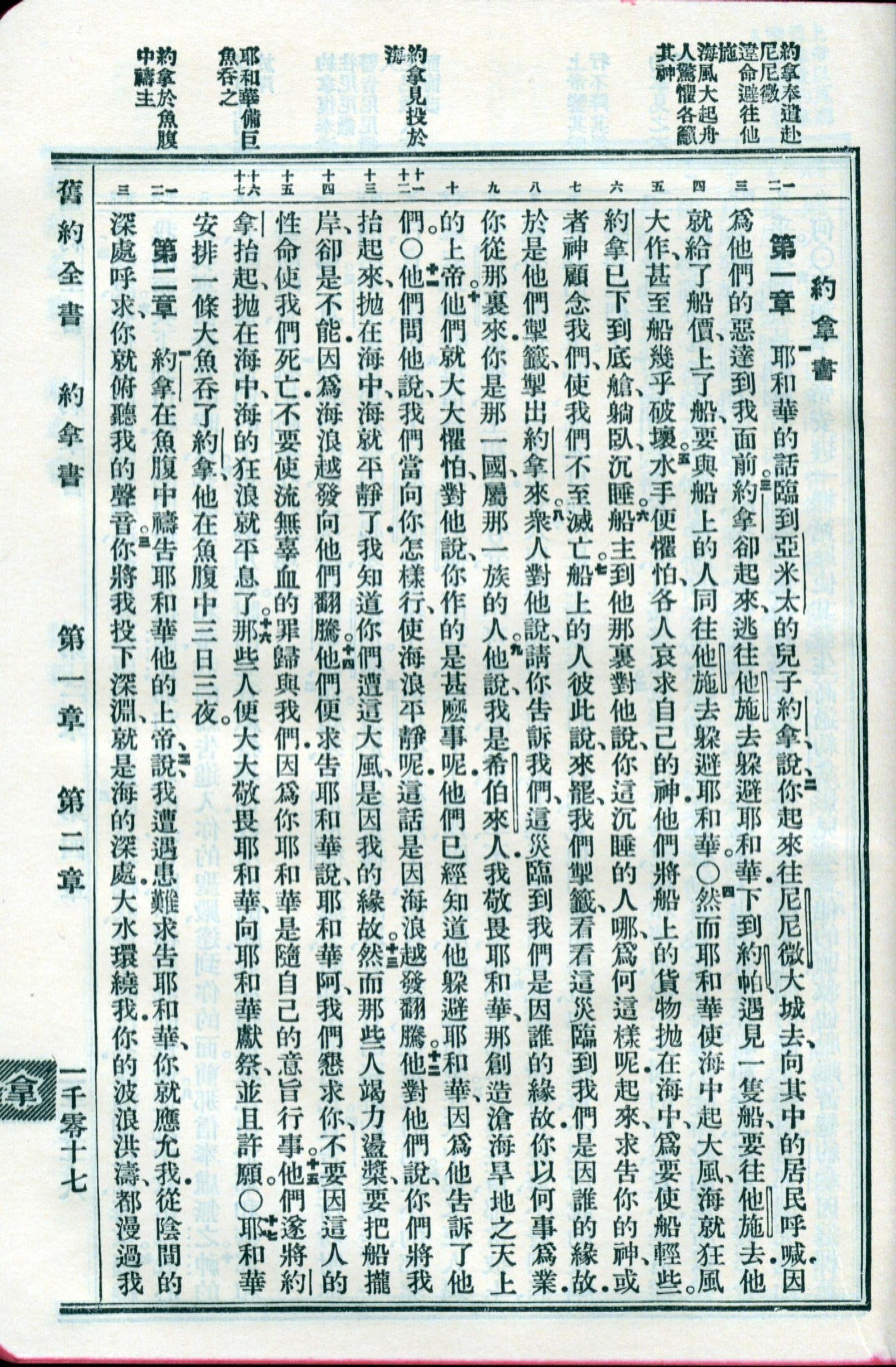 1959年新舊約全書 約拿書 1 章 1 節到 2 章 3 節
