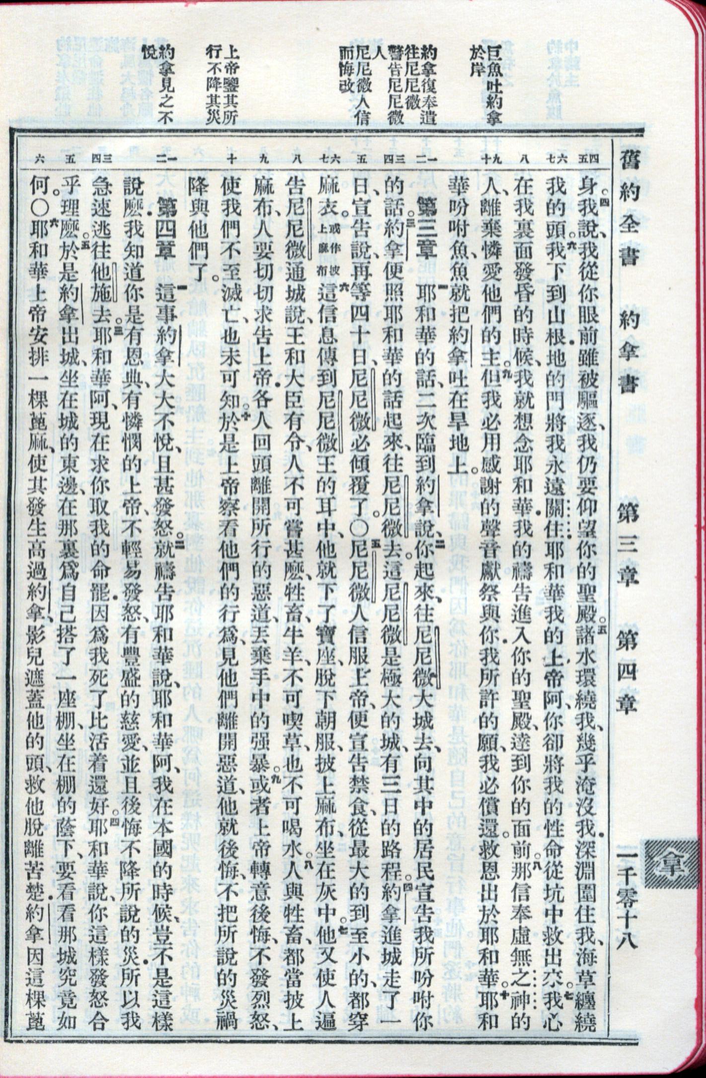 1959年新舊約全書 約拿書 2 章 4 節到 4 章 6 節