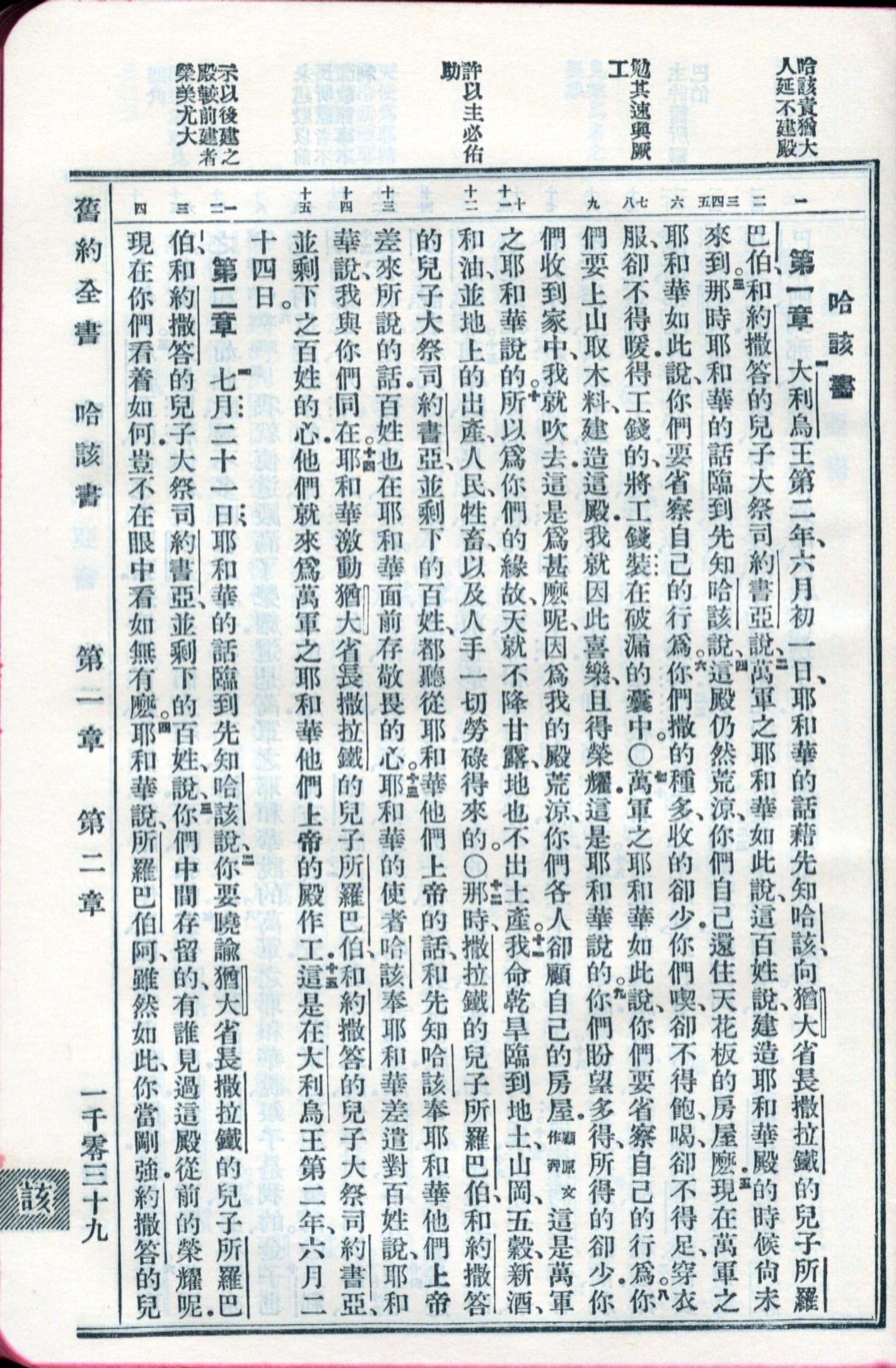1959年新舊約全書 哈該書 1 章 1 節到 2 章 3 節
