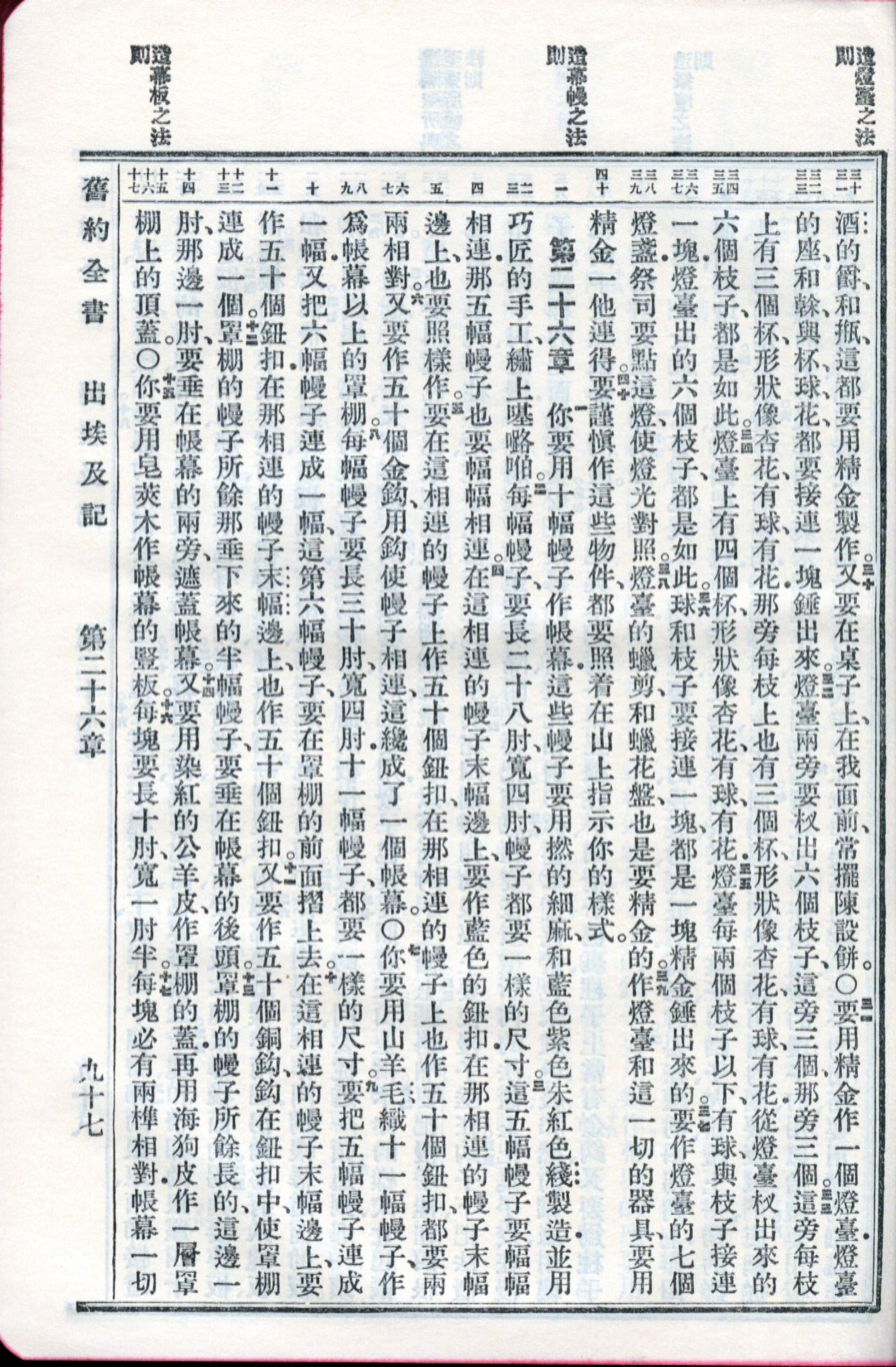 1959年新舊約全書 出埃及記 25 章 30 節到 26 章 17 節