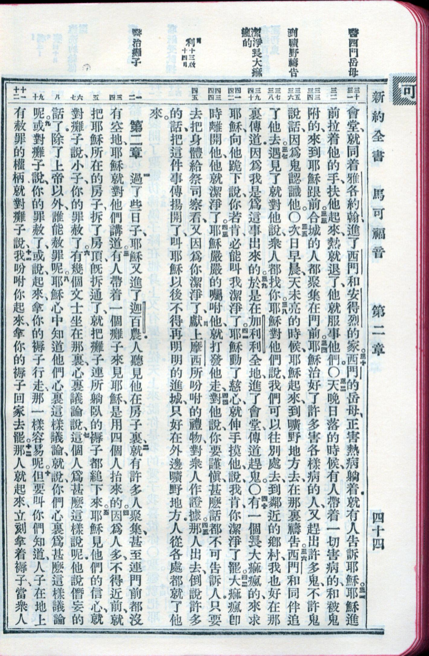 1959年新舊約全書 馬可福音 1 章 30 節到 2 章 12 節