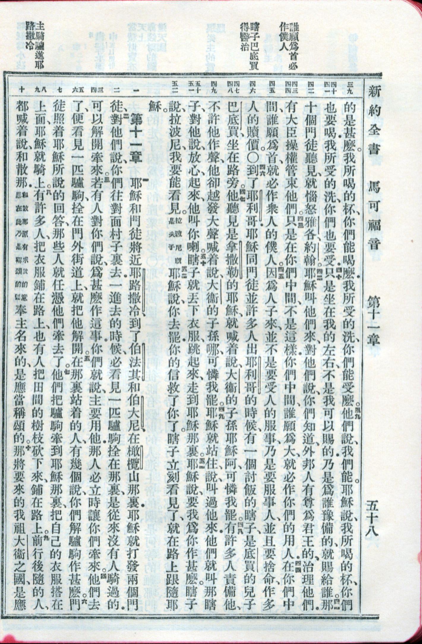 1959年新舊約全書 馬可福音 10 章 39 節到 11 章 10 節