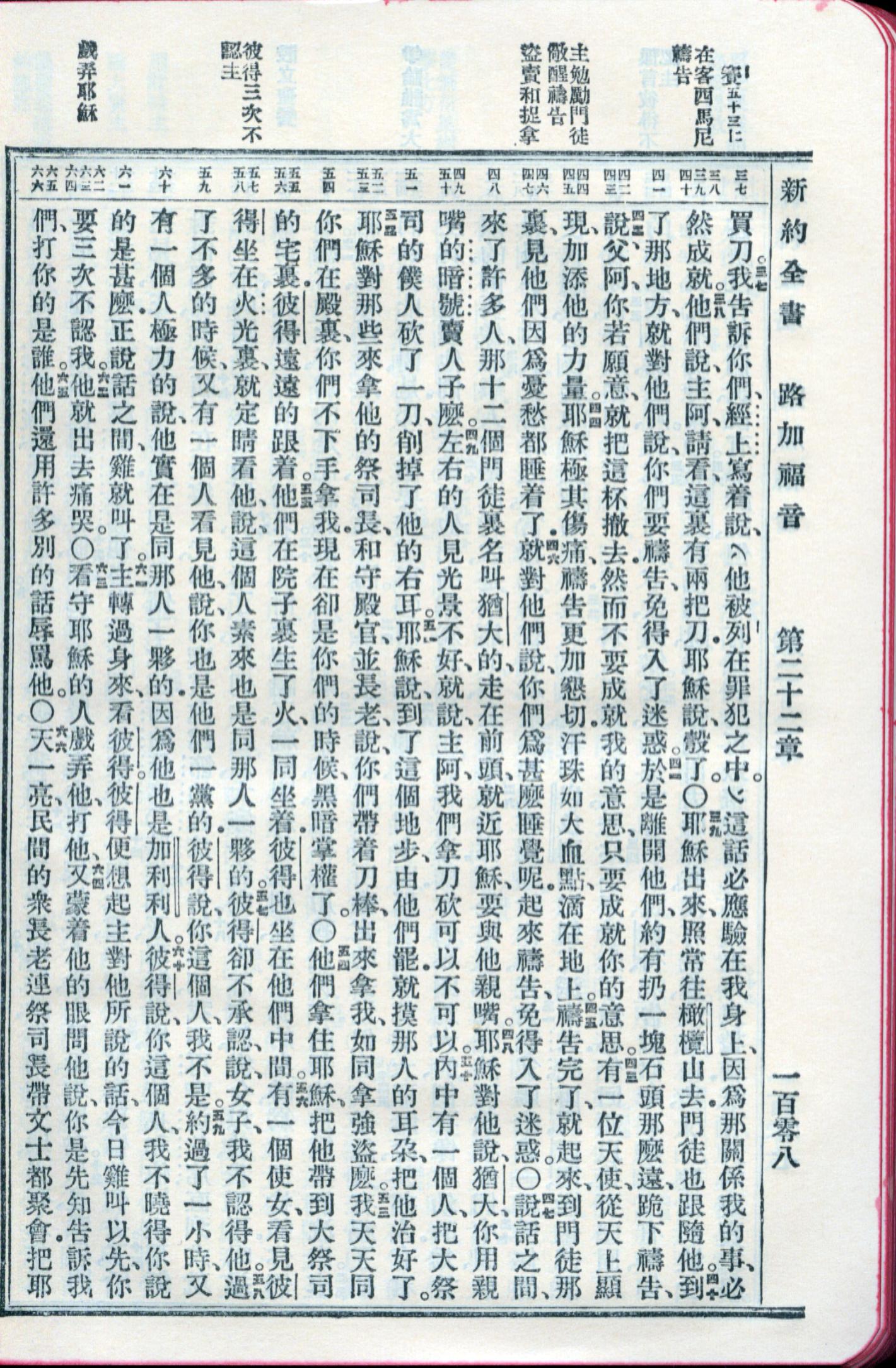 1959年新舊約全書 路加福音 22 章 37 節到 22 章 66 節