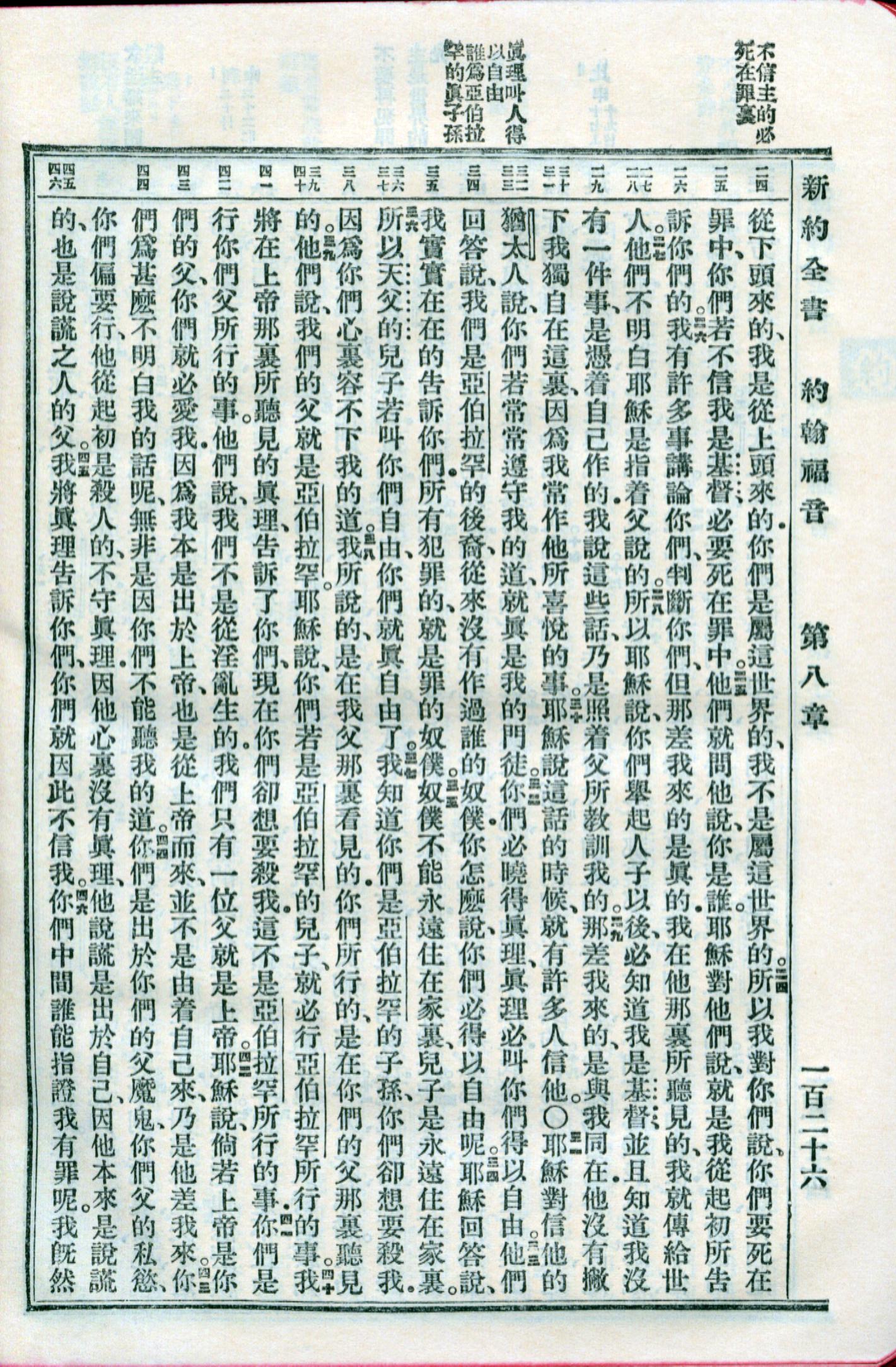 1959年新舊約全書 約翰福音 8 章 24 節到 8 章 46 節