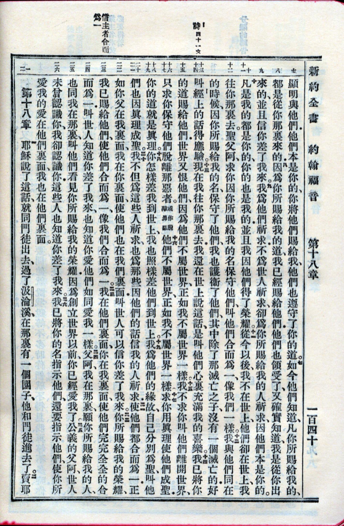 1959年新舊約全書 約翰福音 17 章 7 節到 18 章 2 節