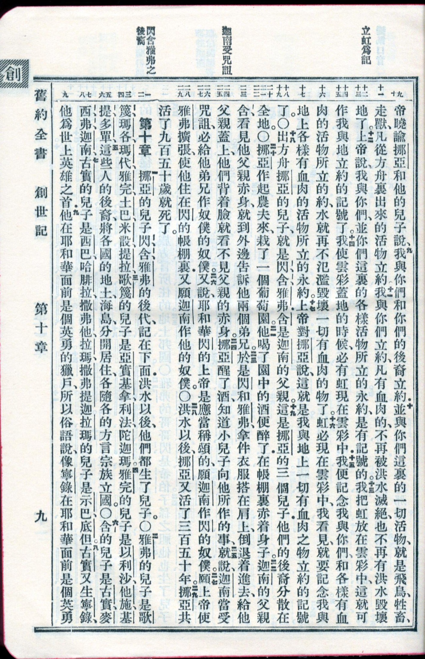 1959年新舊約全書 創世記 9 章 9 節到 10 章 9 節
