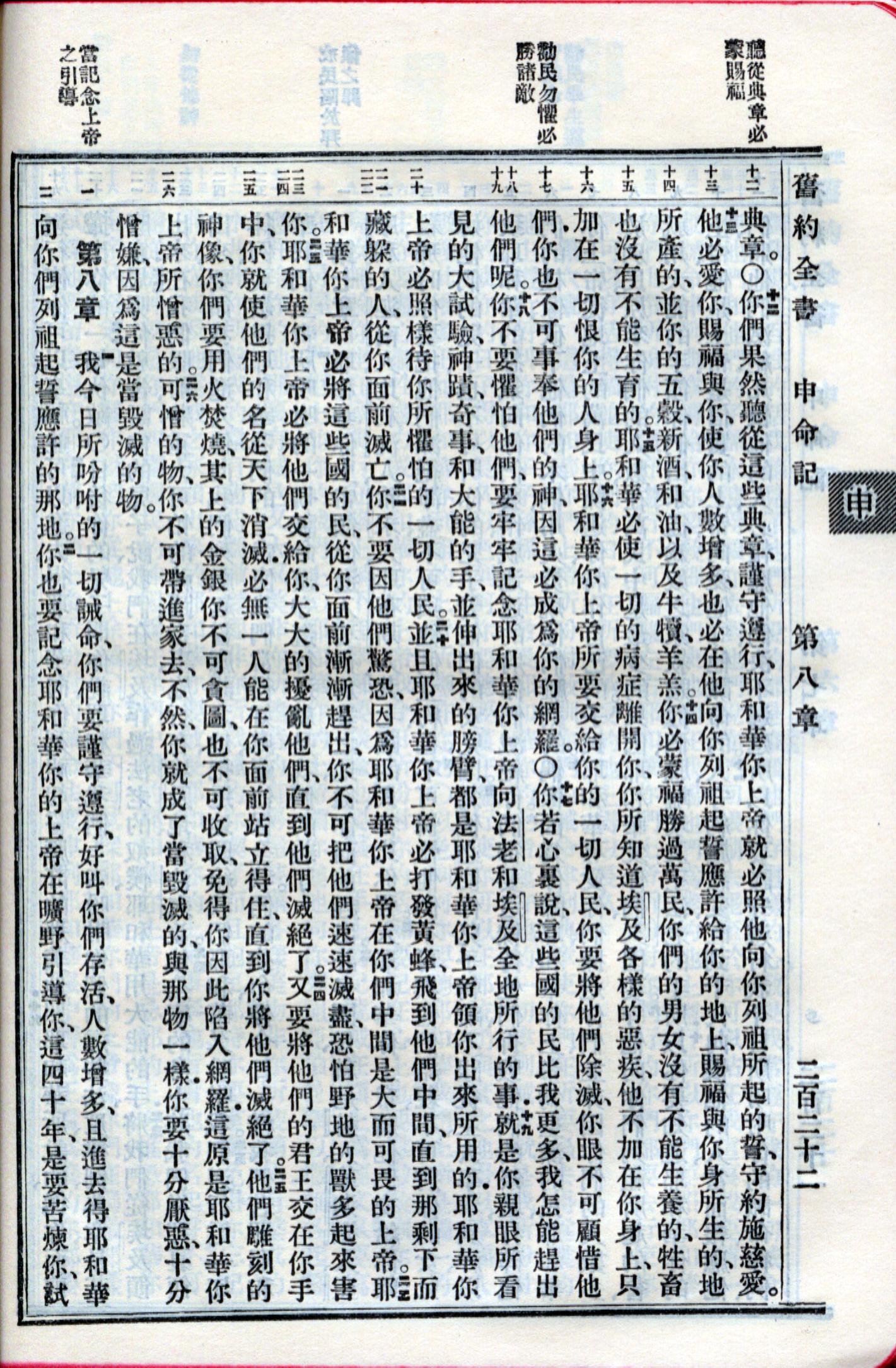 1959年新舊約全書 申命記 7 章 12 節到 8 章 2 節