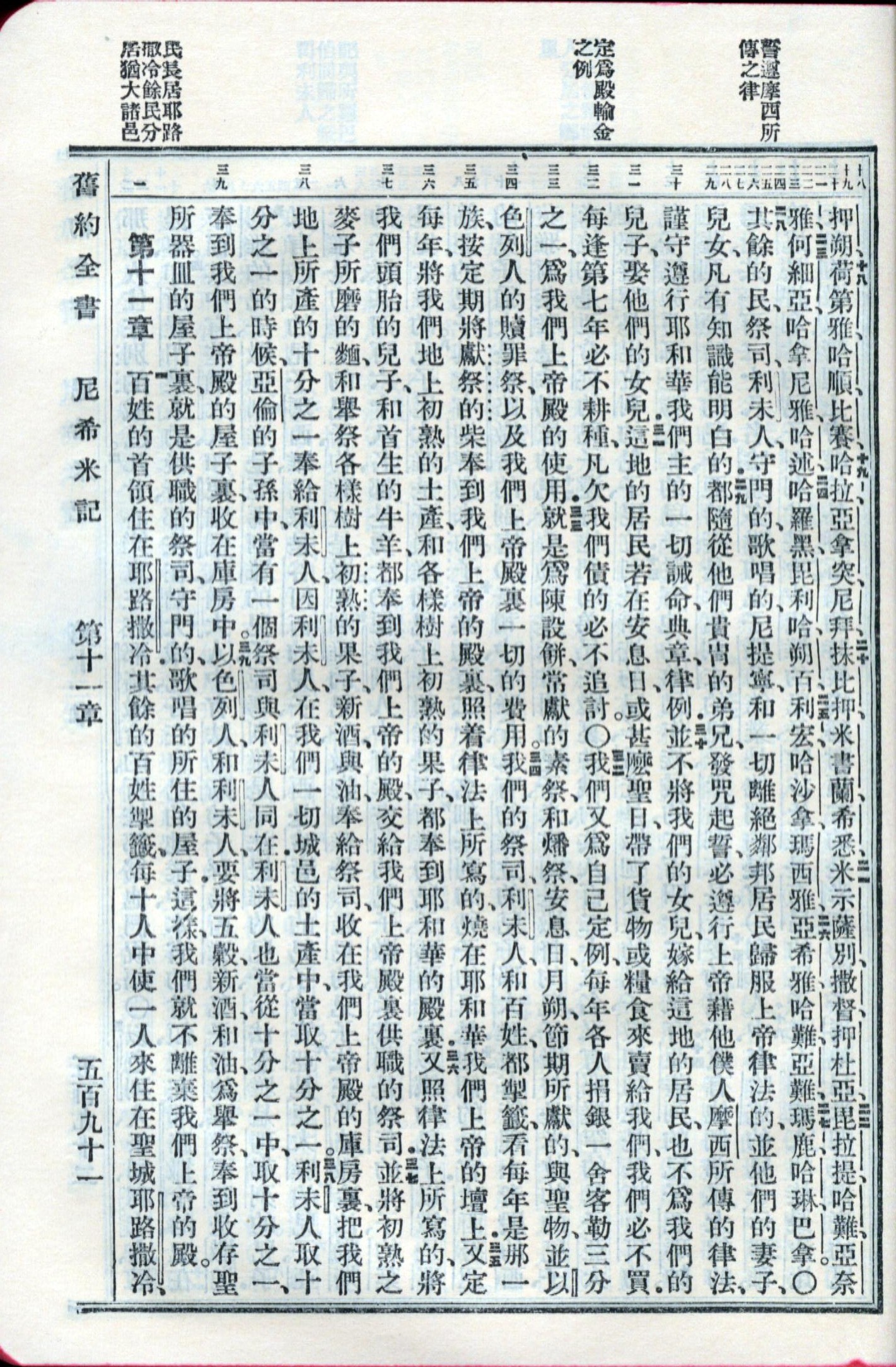1959年新舊約全書 尼希米記 10 章 18 節到 11 章 1 節