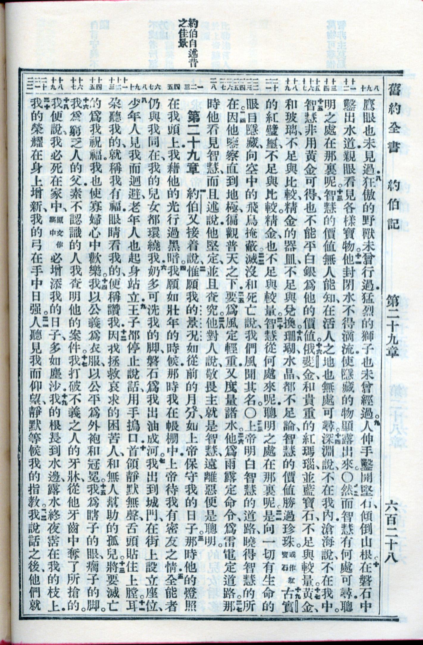 1959年新舊約全書 約伯記 28 章 8 節到 29 章 22 節