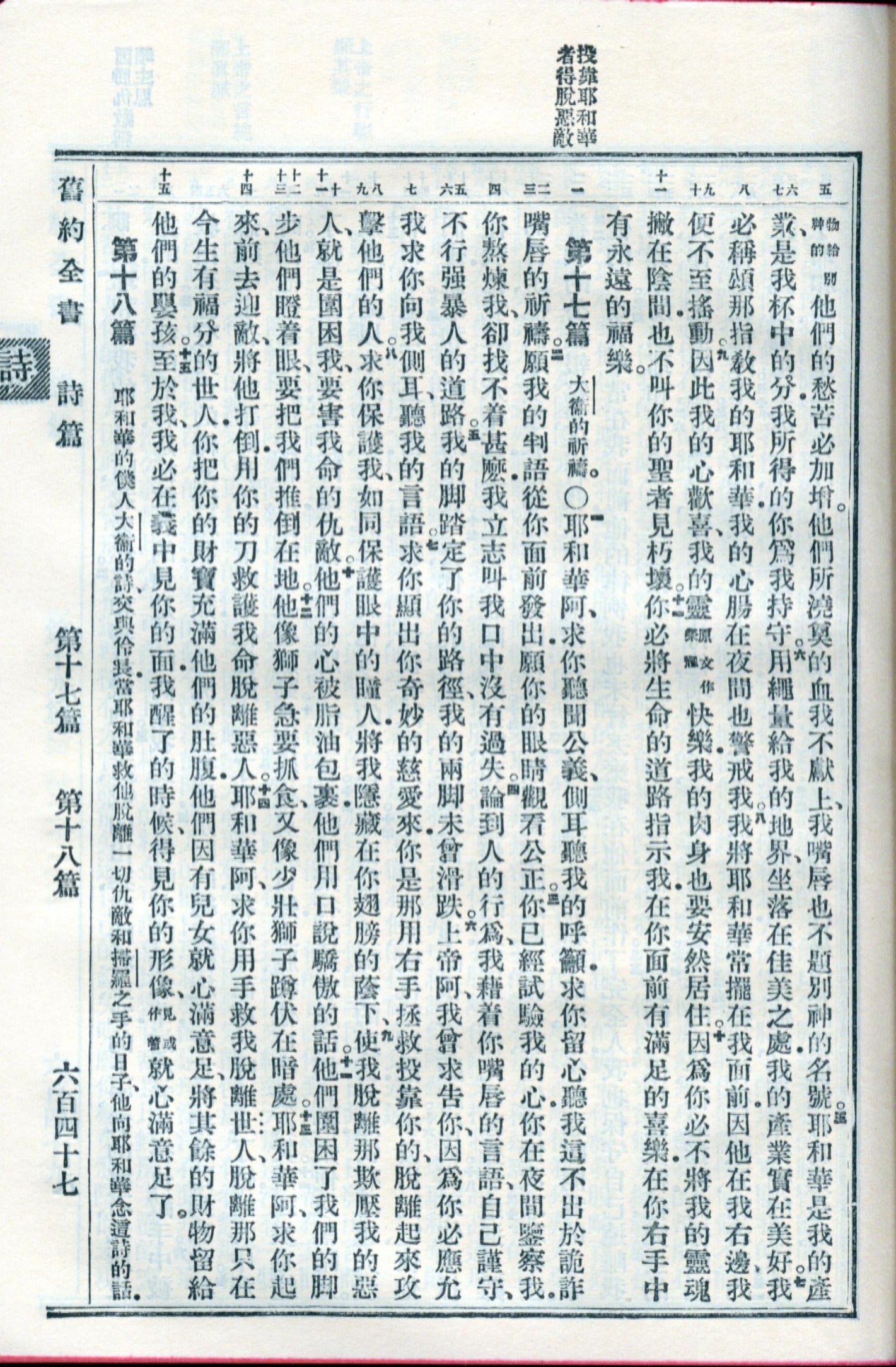 1959年新舊約全書 詩篇 16 章 5 節到 17 章 15 節