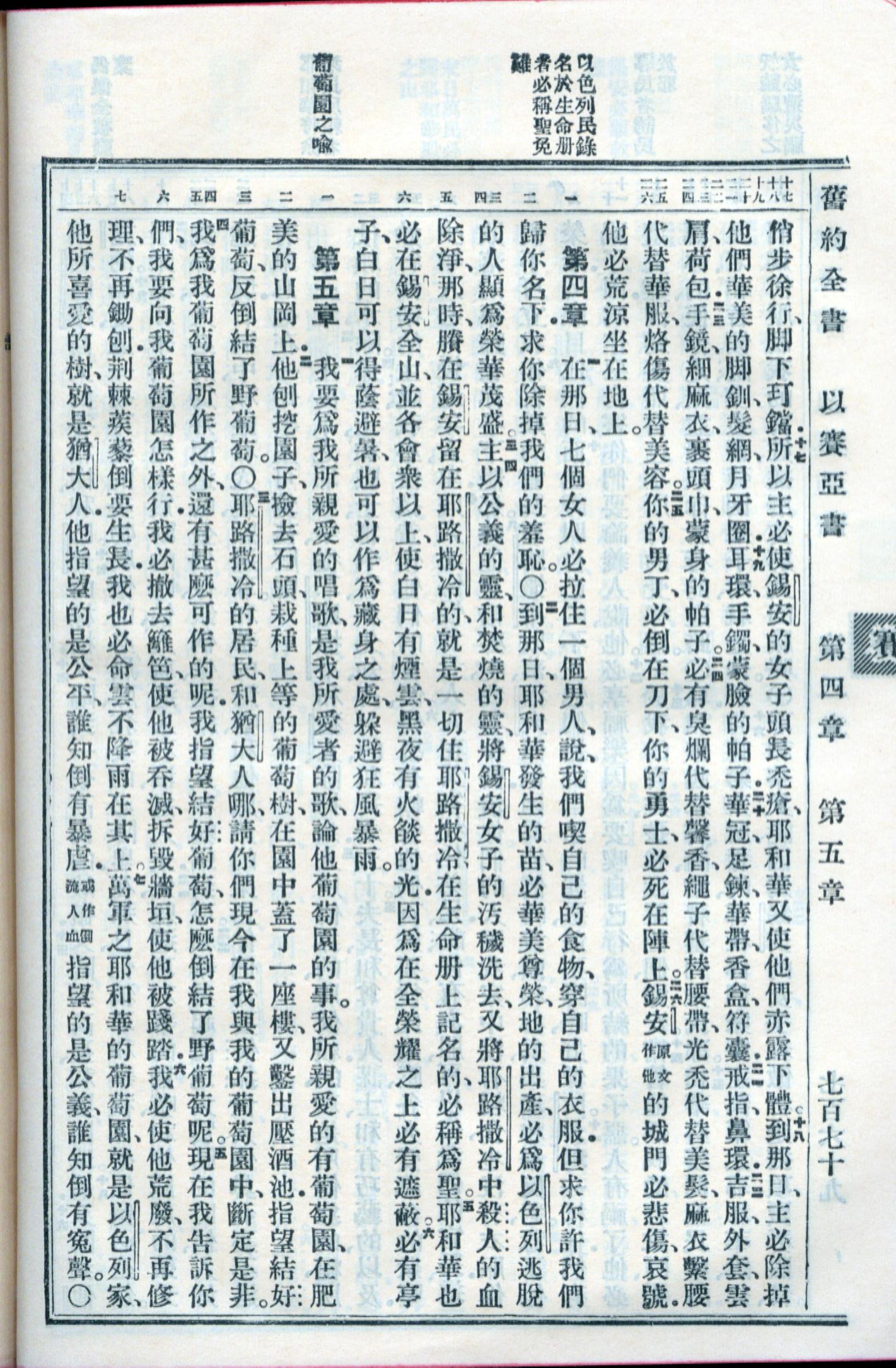 1959年新舊約全書 以賽亞書 3 章 17 節到 5 章 7 節