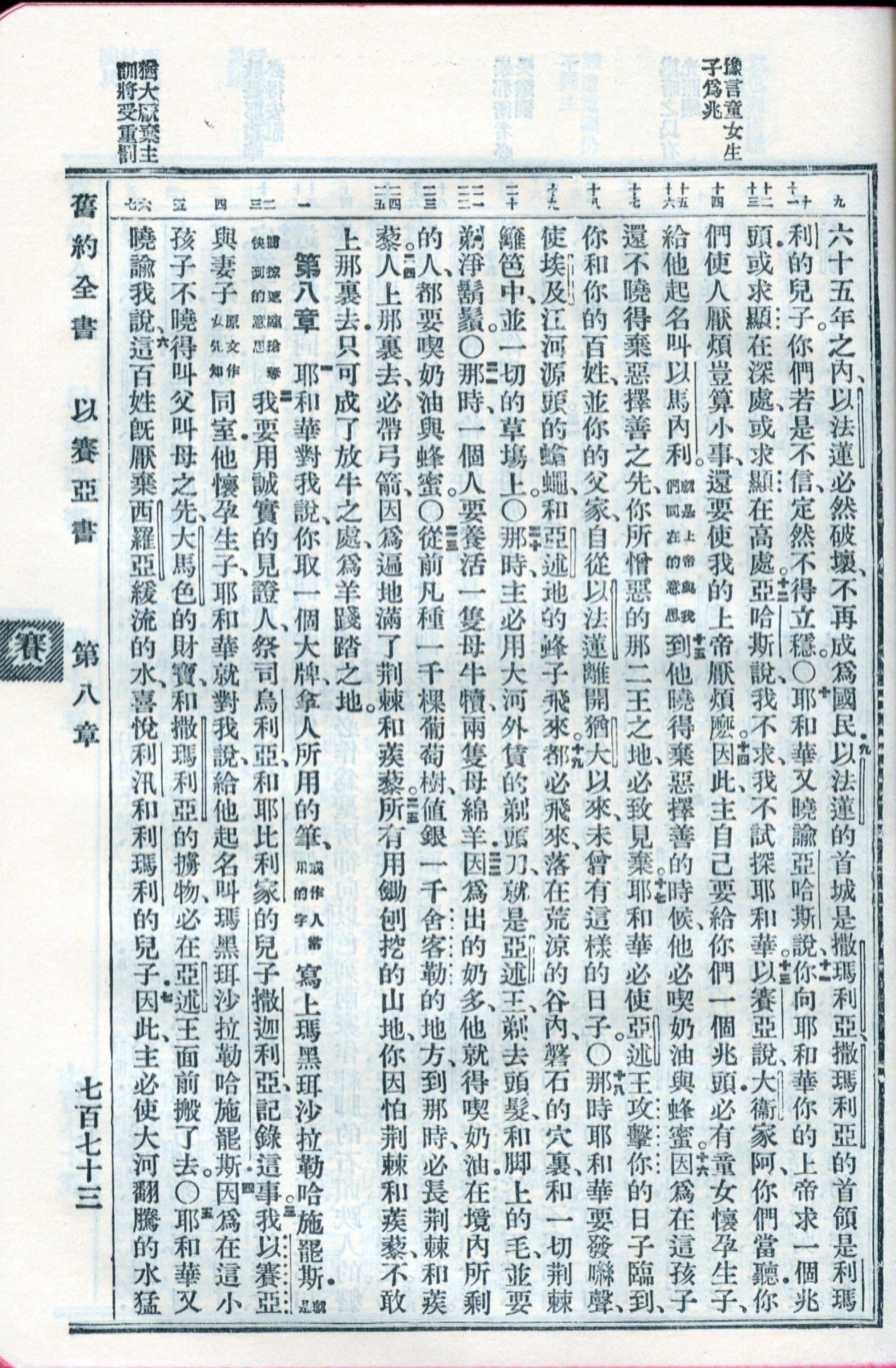 1959年新舊約全書 以賽亞書 7 章 9 節到 8 章 7 節