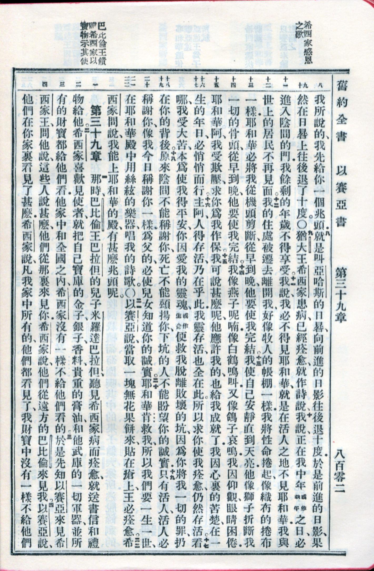 1959年新舊約全書 以賽亞書 38 章 8 節到 39 章 4 節