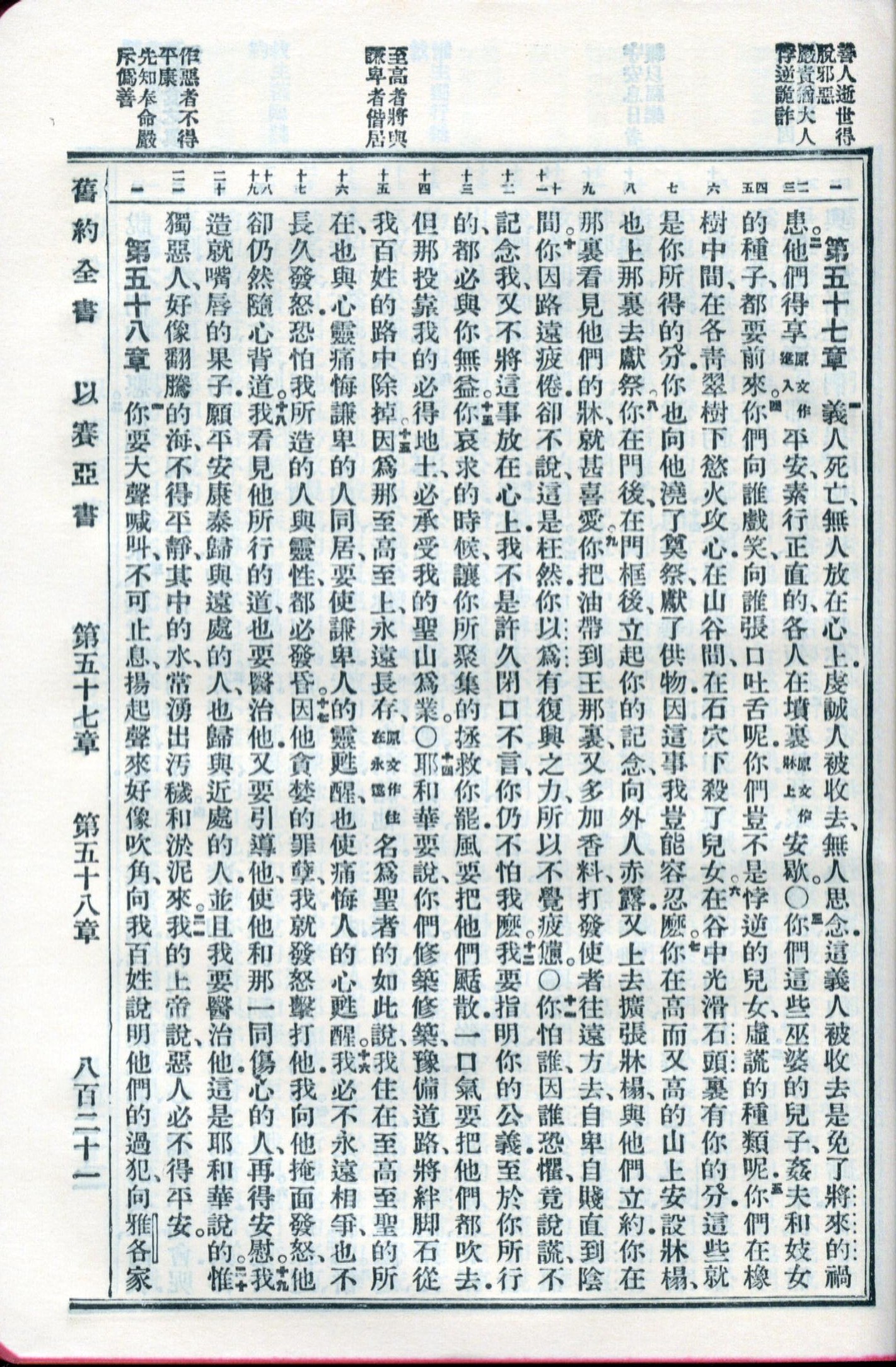 1959年新舊約全書 以賽亞書 57 章 1 節到 58 章 1 節