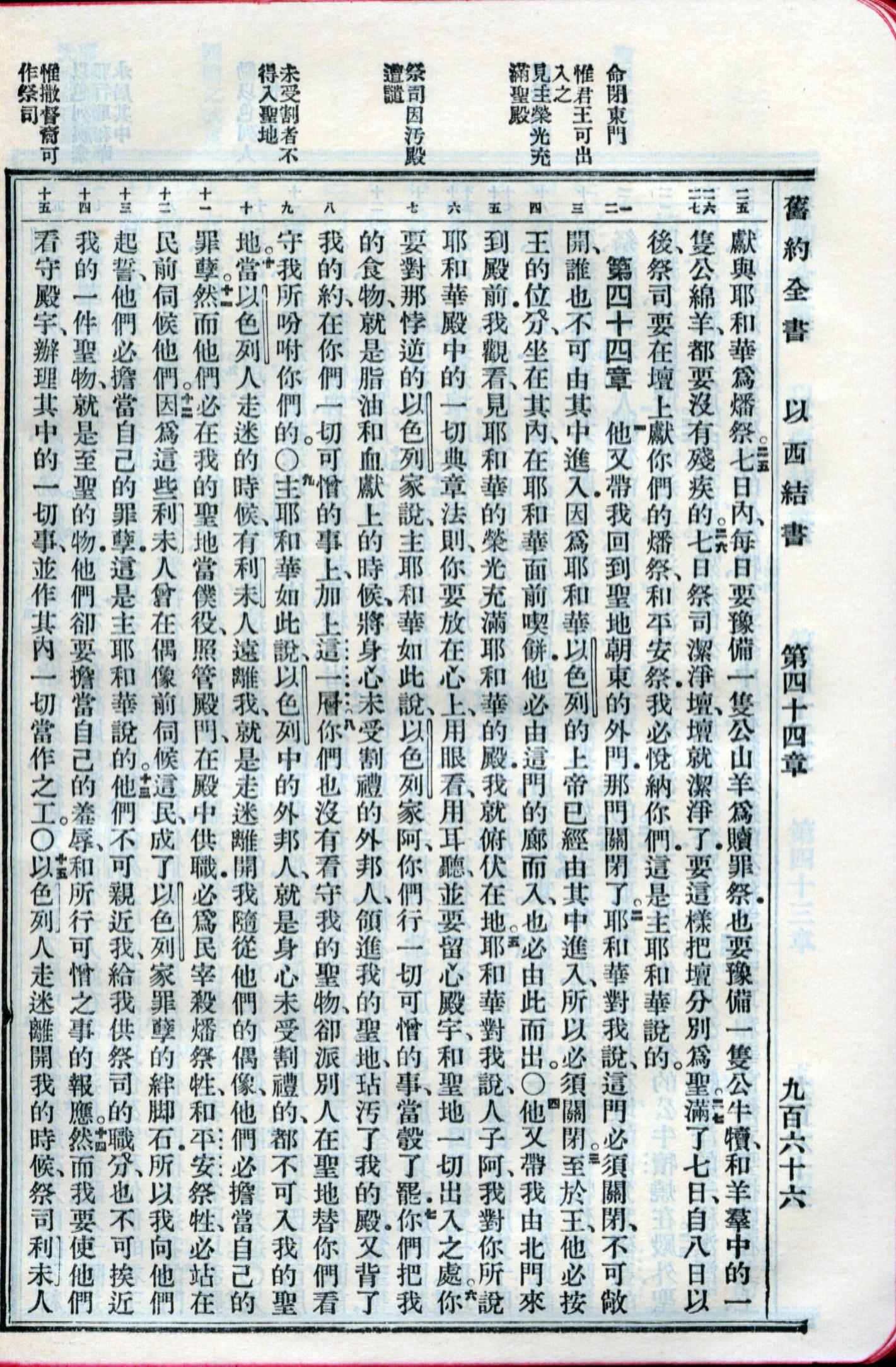1959年新舊約全書 以西結書 43 章 25 節到 44 章 15 節