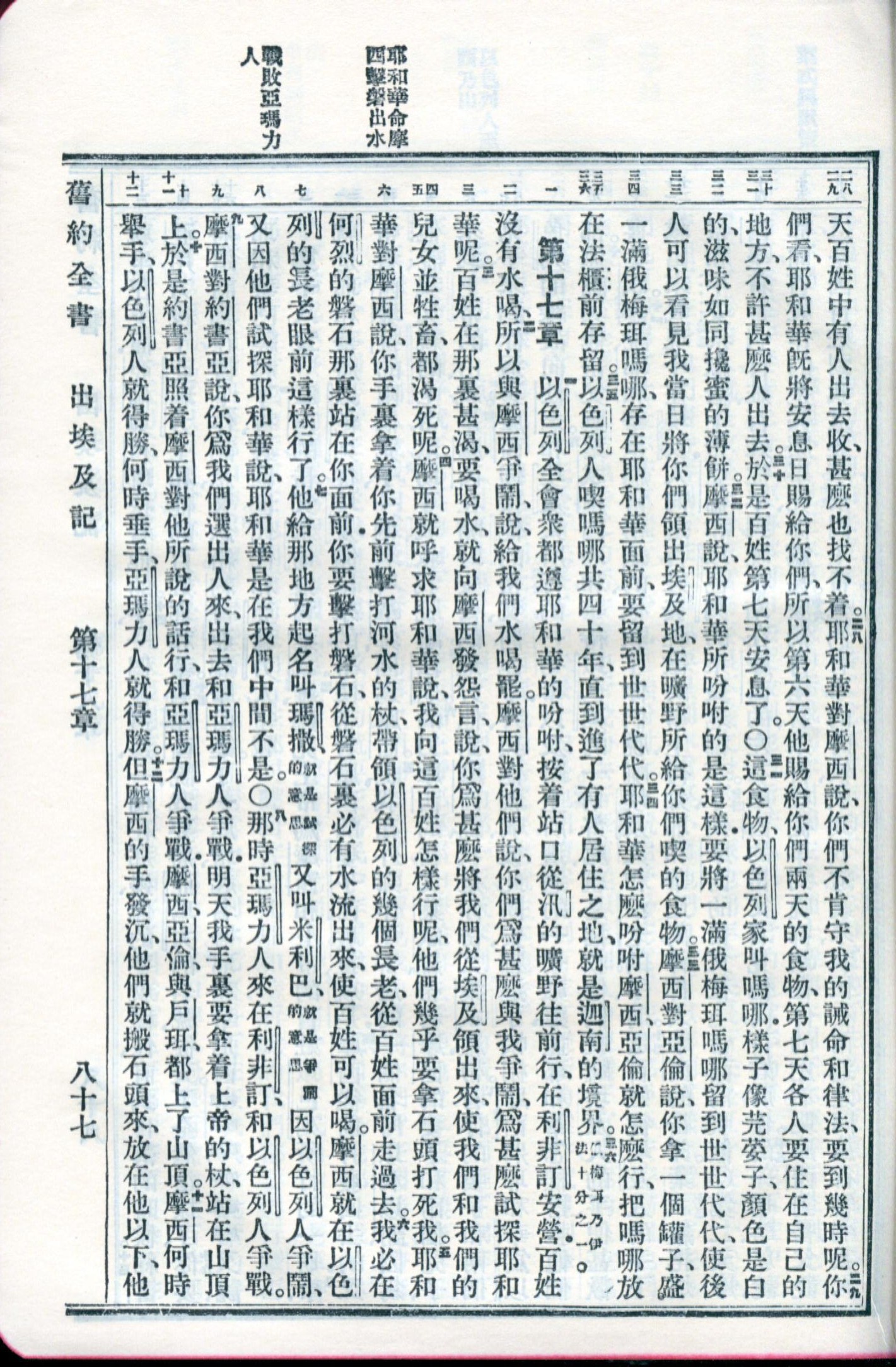1959年新舊約全書 出埃及記 16 章 28 節到 17 章 12 節