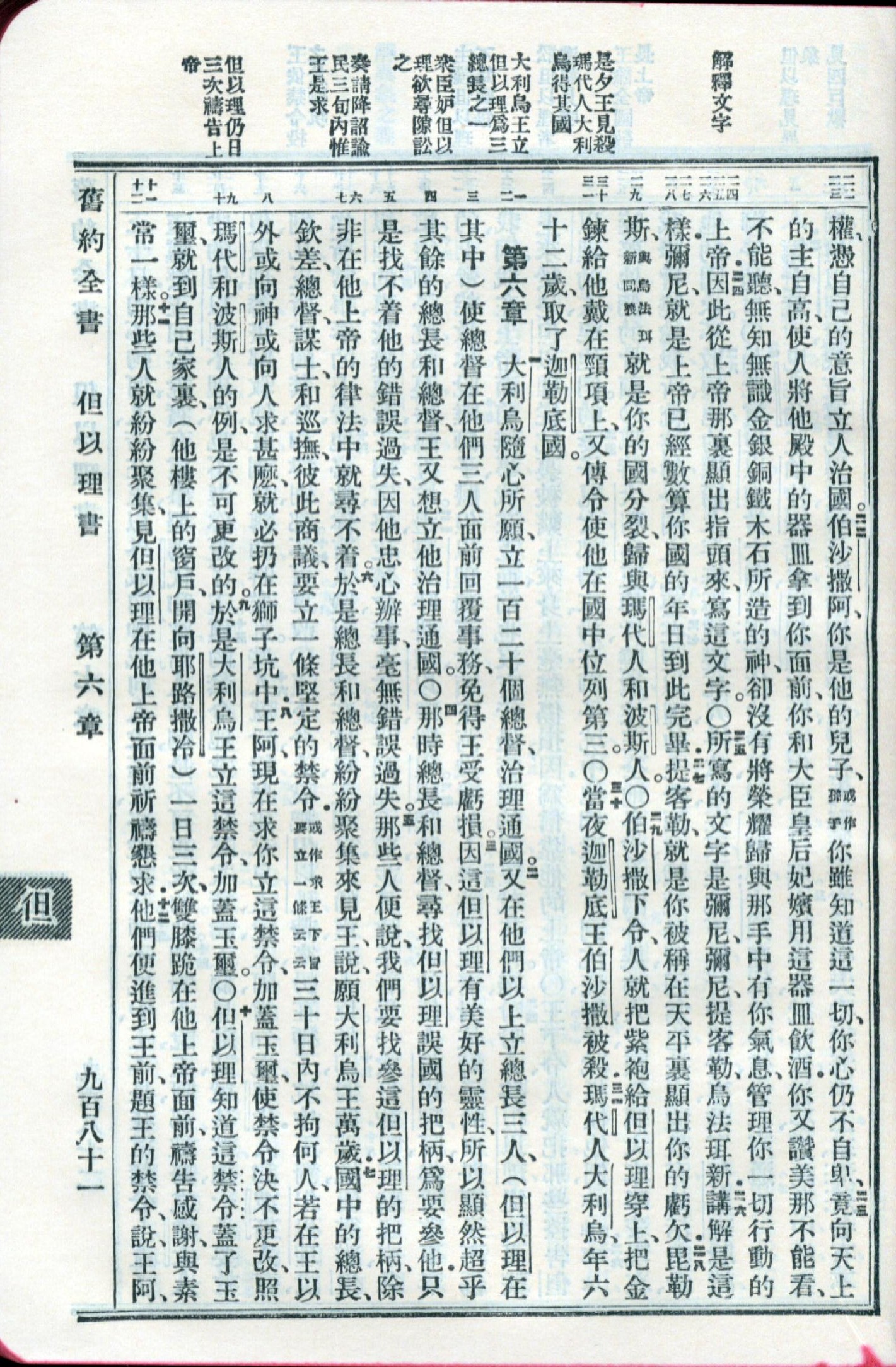 1959年新舊約全書 但以理書 5 章 22 節到 6 章 11 節