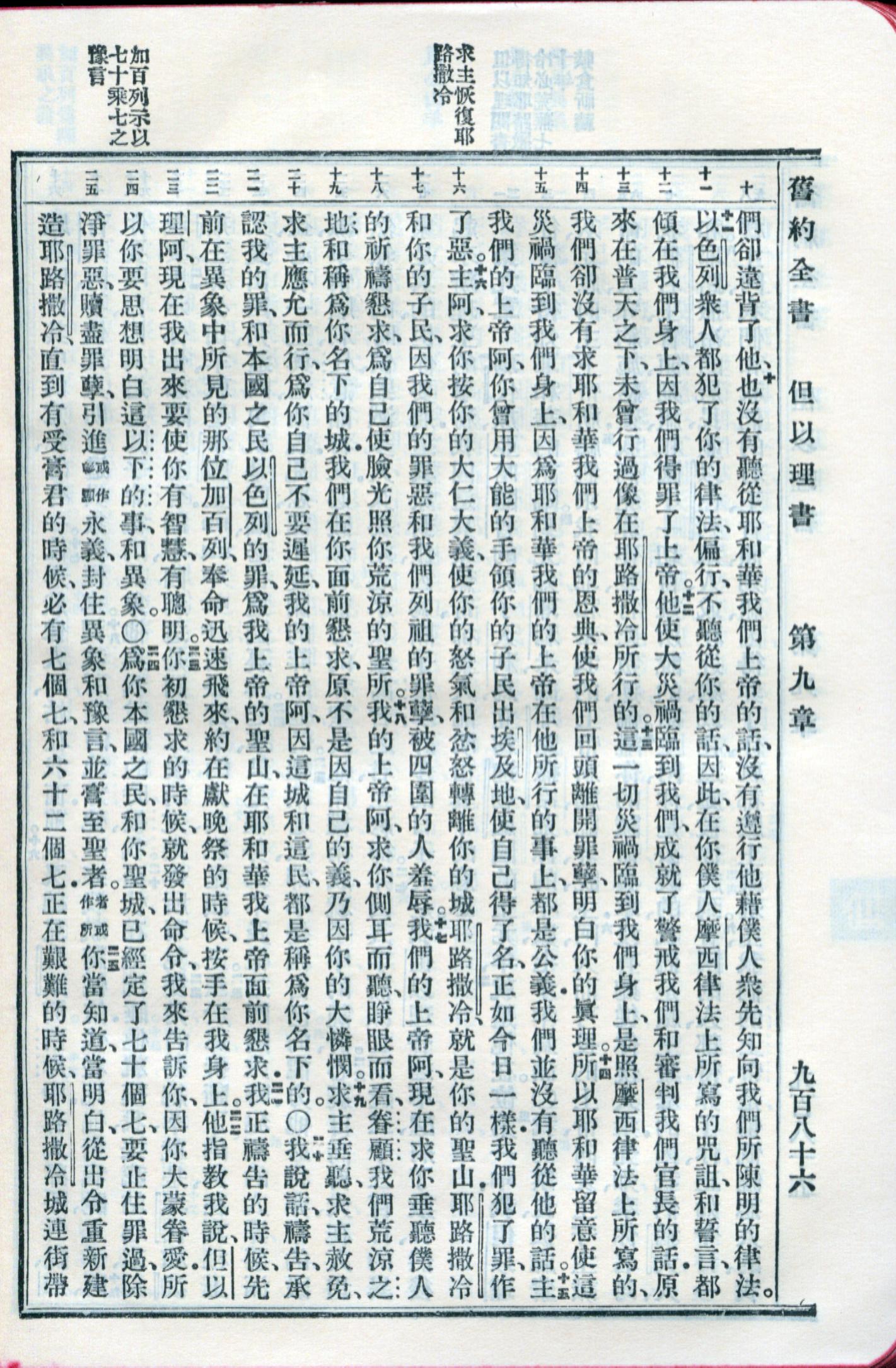 1959年新舊約全書 但以理書 9 章 10 節到 9 章 25 節