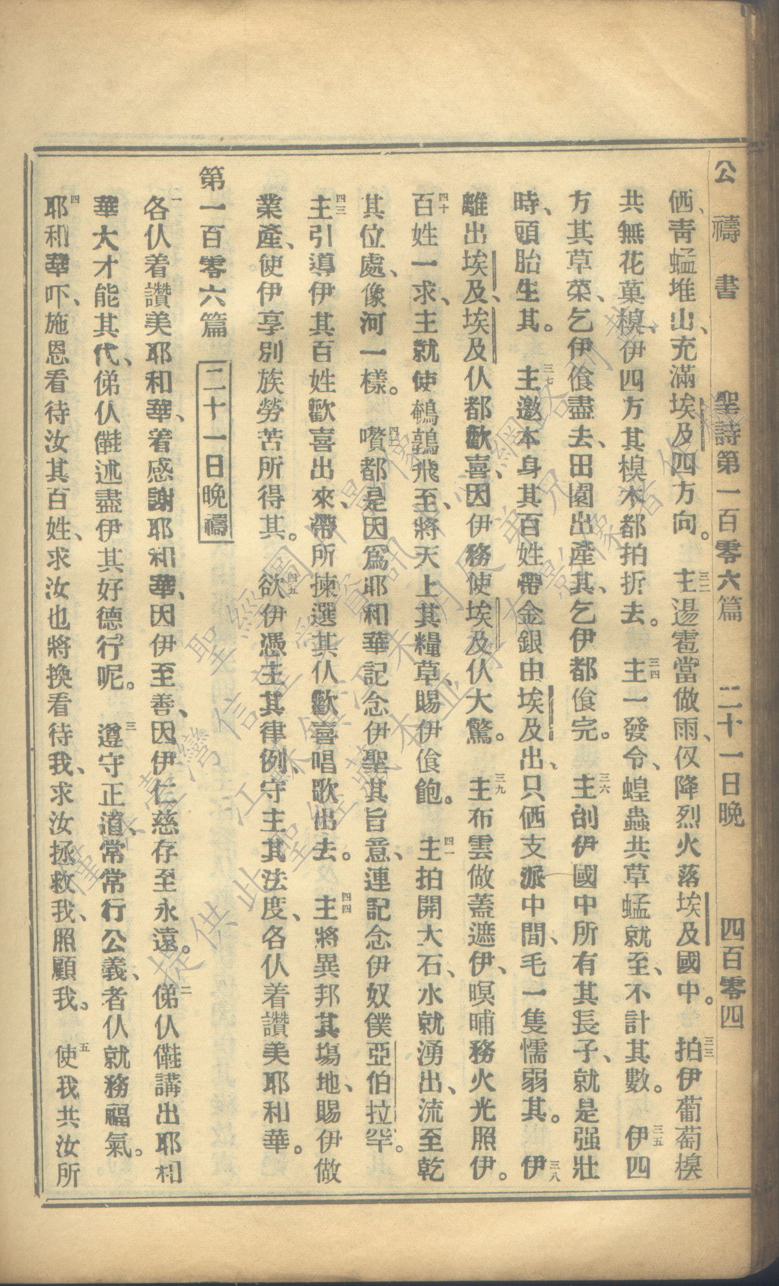 1931年福建教區公禱書 詩篇 105 章 32 節到 106 章 5 節