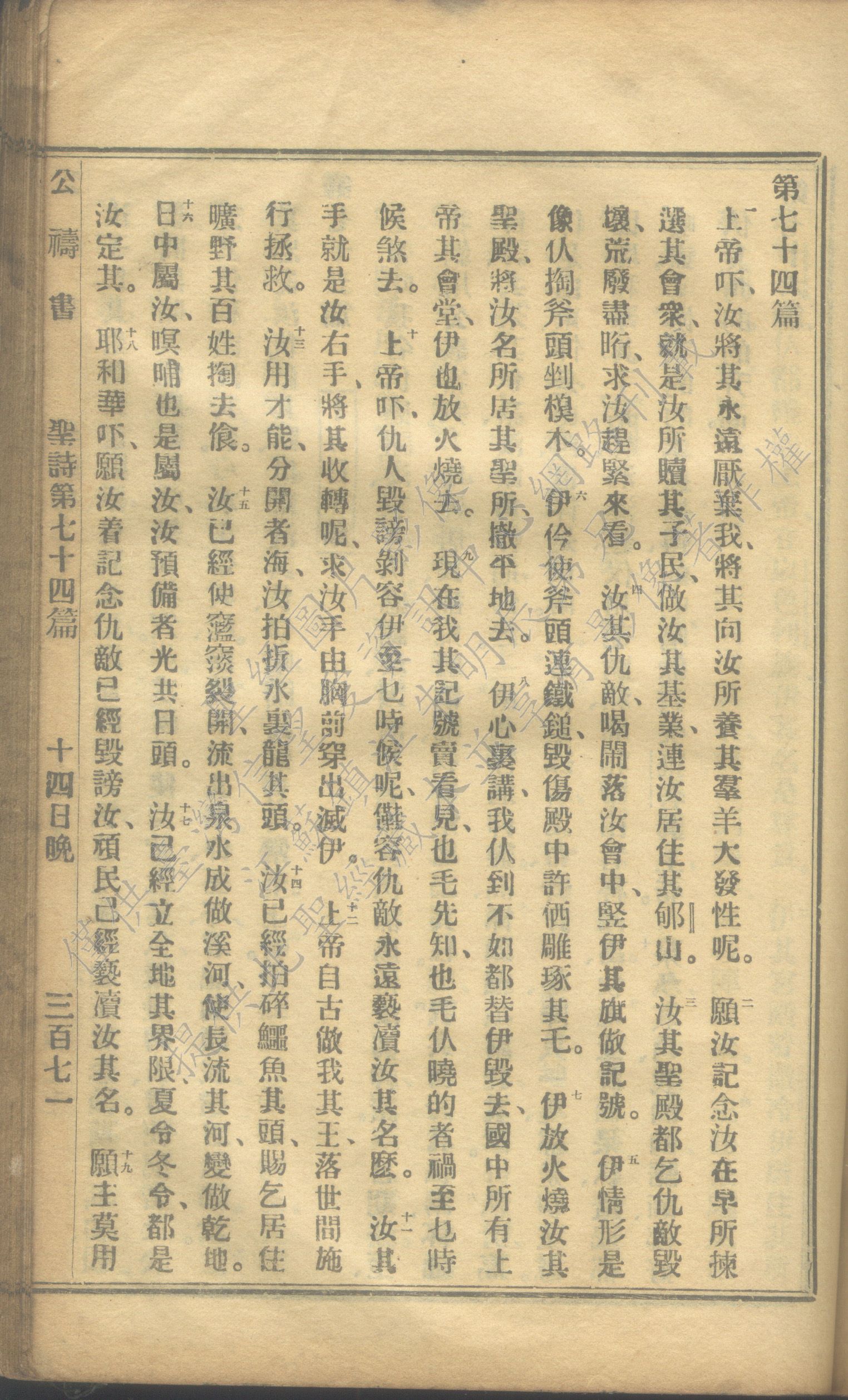 1931年福建教區公禱書 詩篇 74 章 1 節到 74 章 19 節