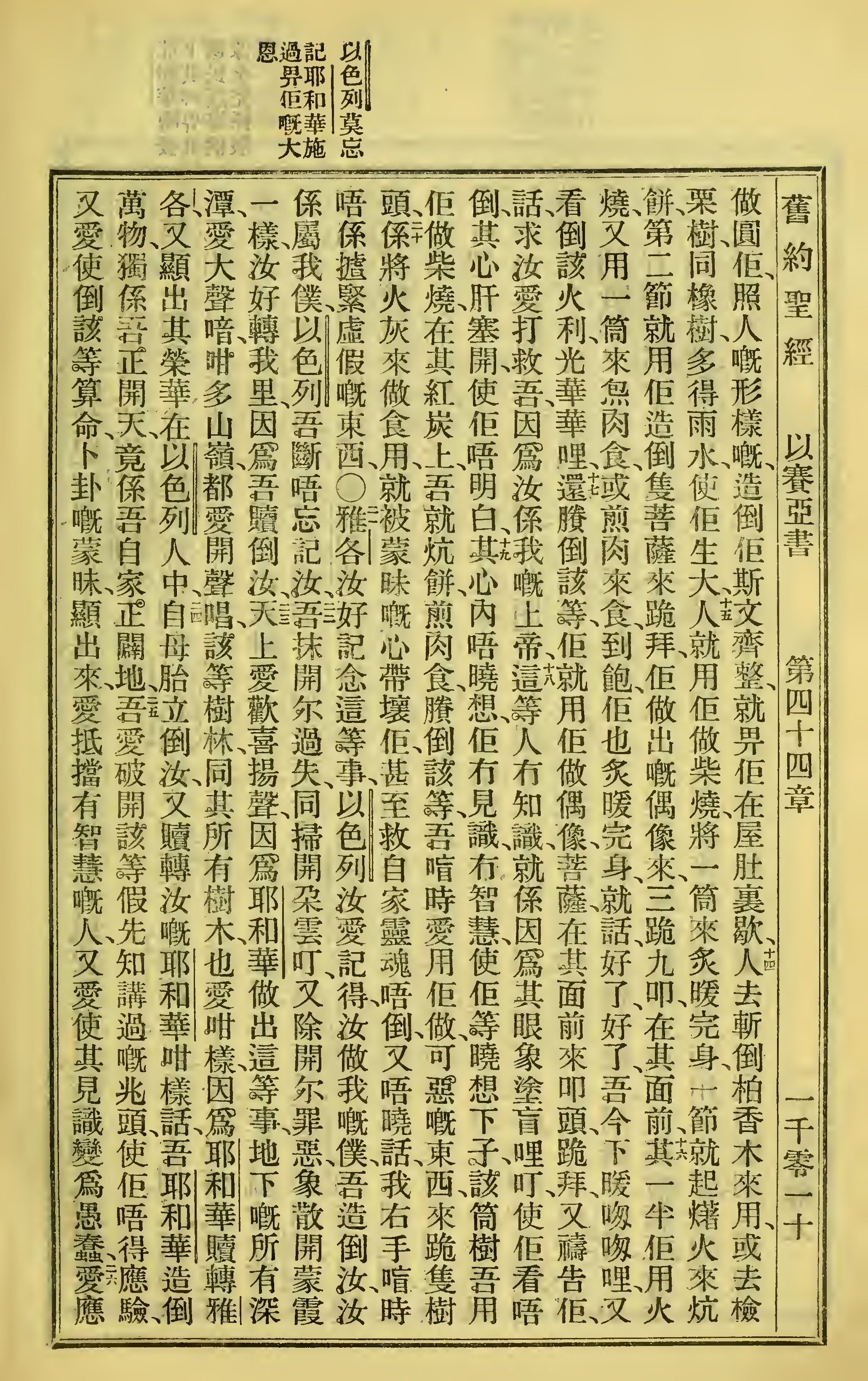 1923年客話新舊約聖經漢字版 以賽亞書 44 章 13 節到 44 章 25 節