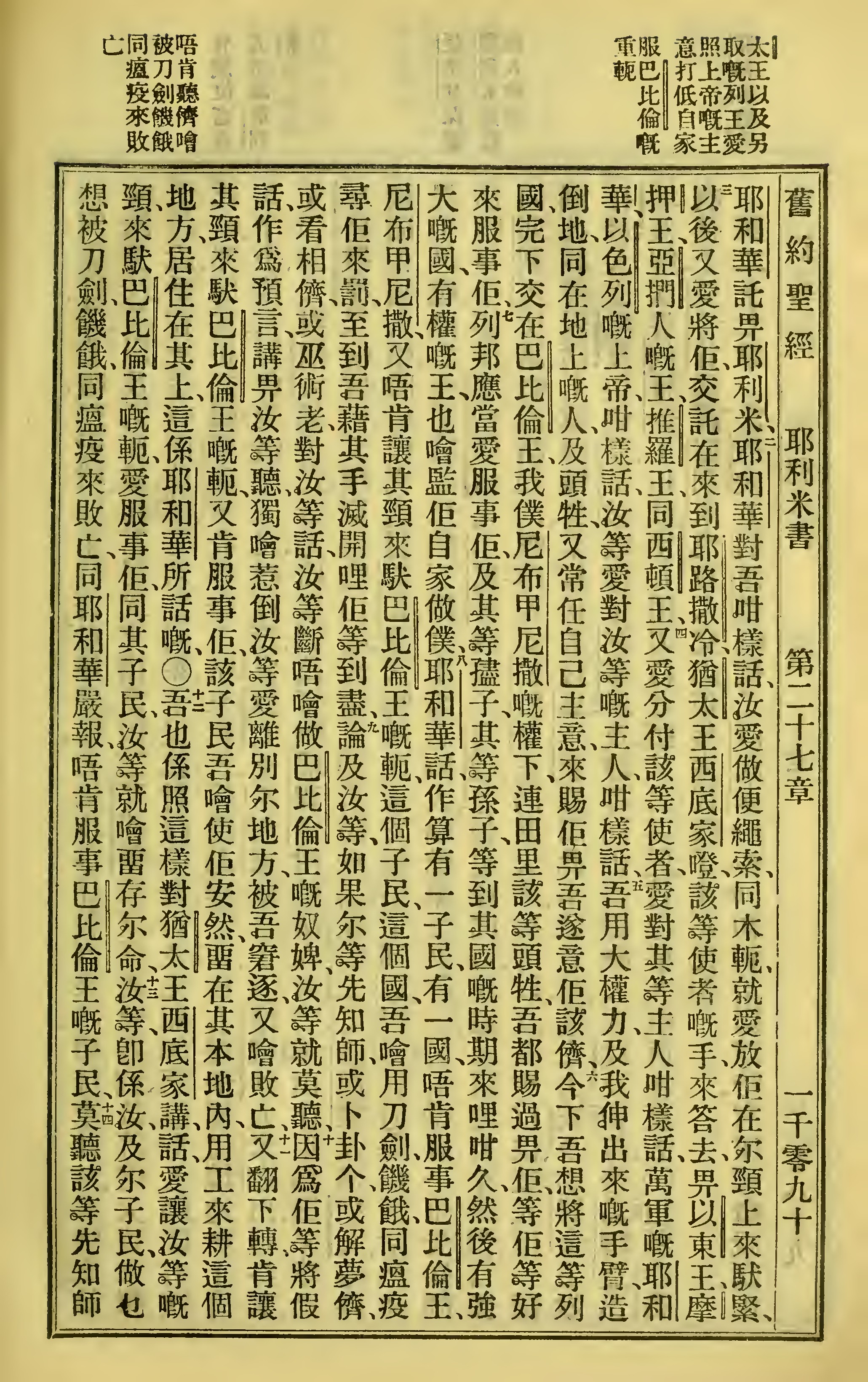 1923年客話新舊約聖經漢字版 耶利米書 27 章 2 節到 27 章 13 節