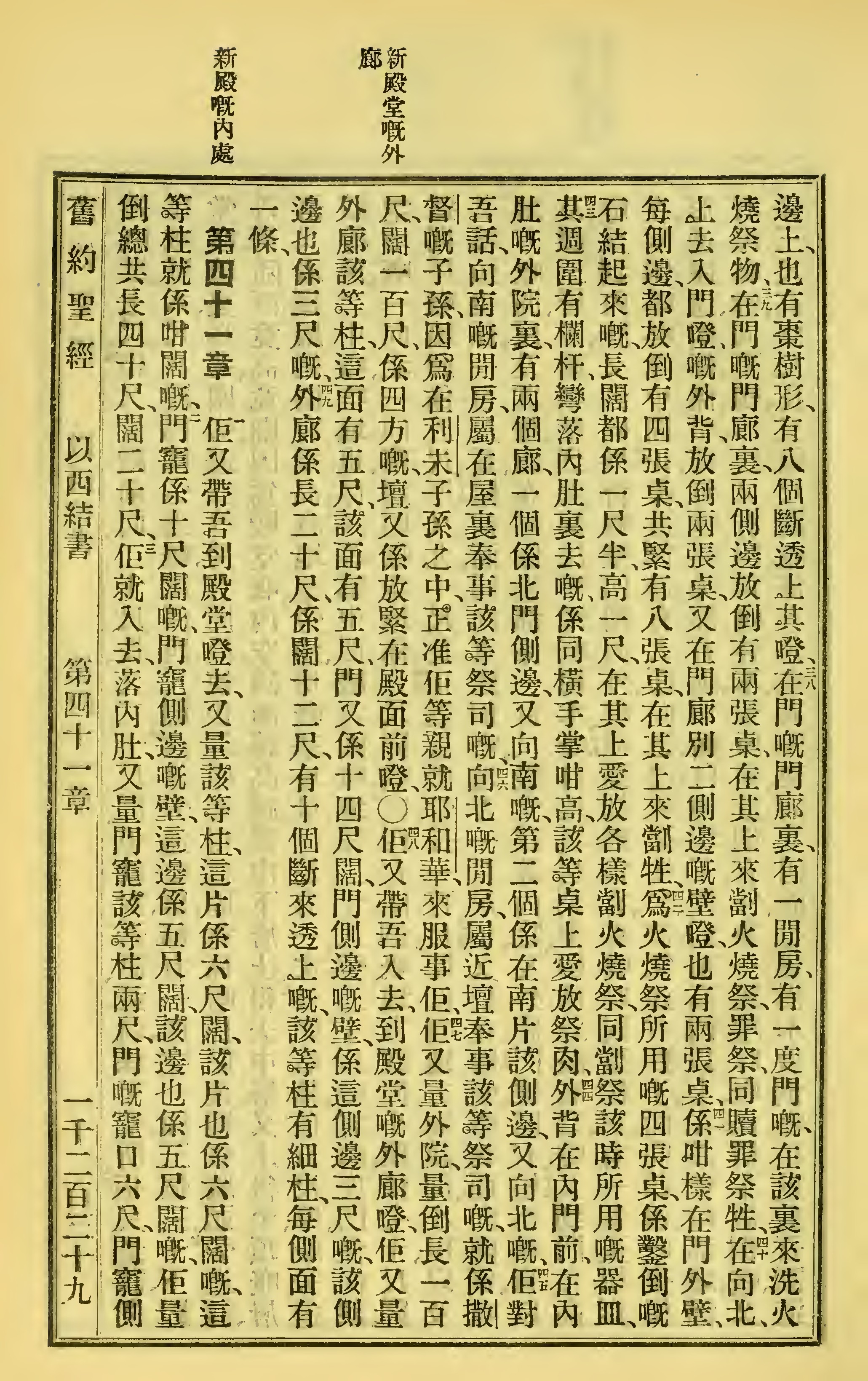1923年客話新舊約聖經漢字版 以西結書 40 章 37 節到 41 章 3 節