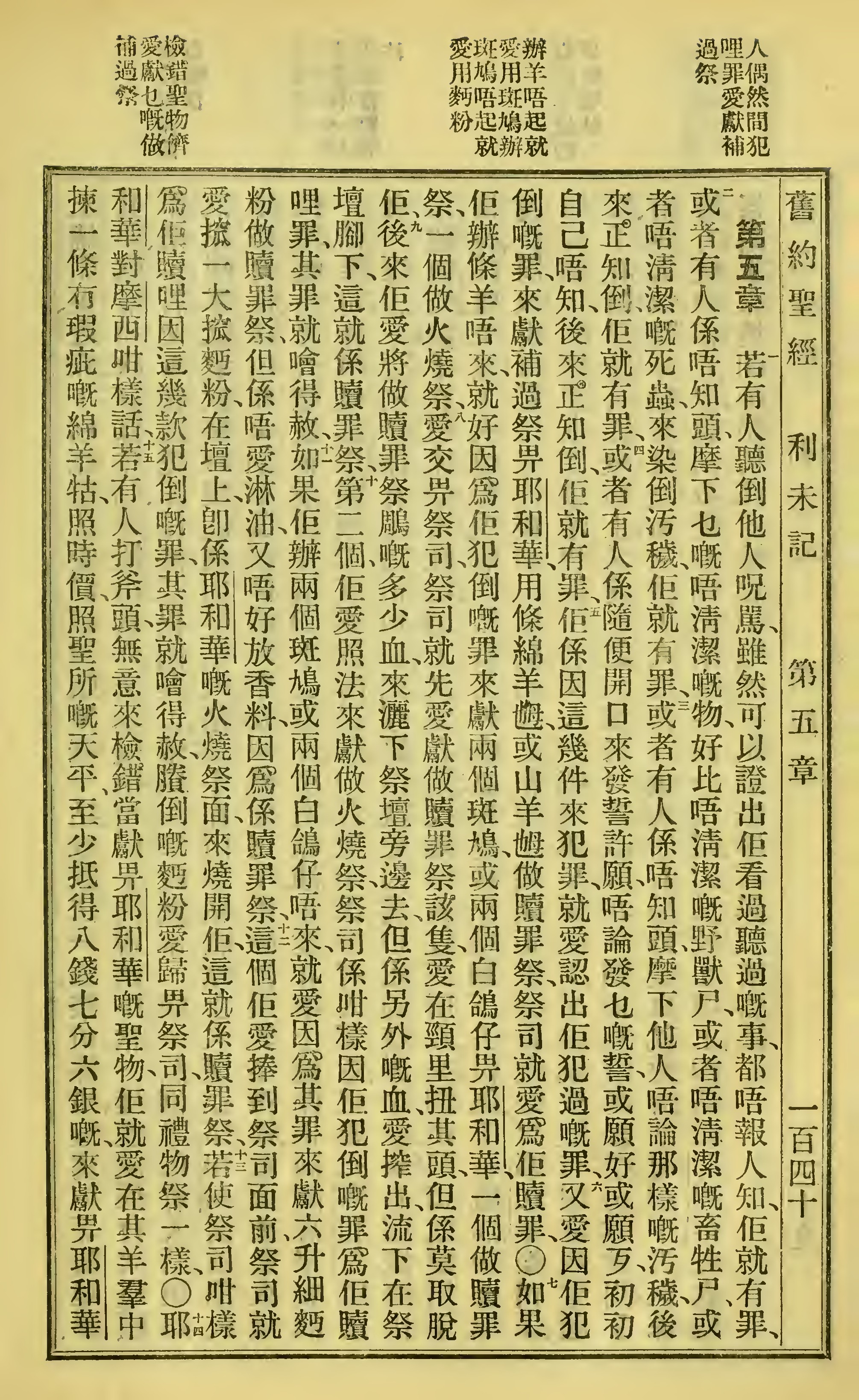 1923年客話新舊約聖經漢字版 利未記 5 章 1 節到 5 章 15 節