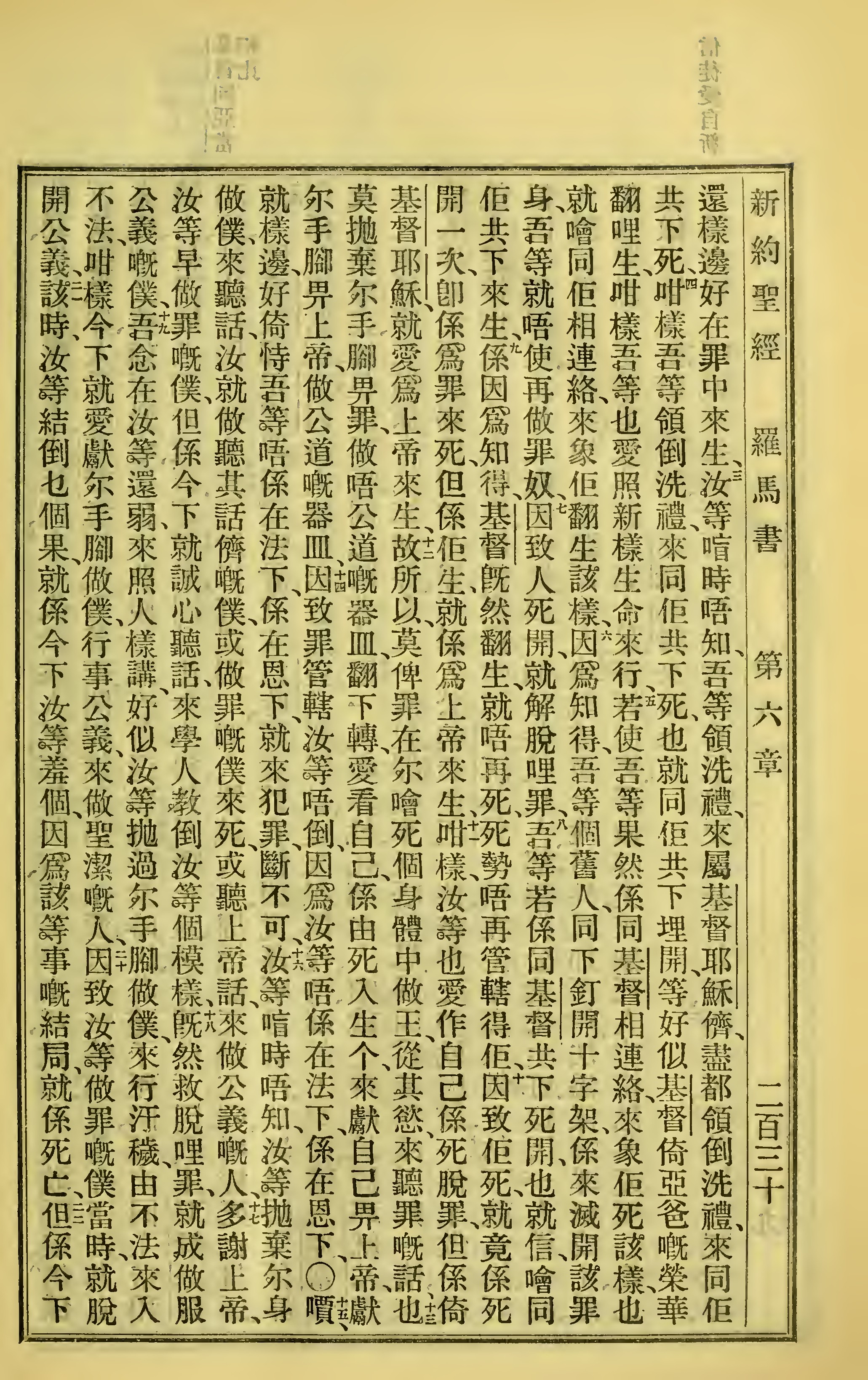 1923年客話新舊約聖經漢字版 羅馬書 6 章 3 節到 6 章 21 節