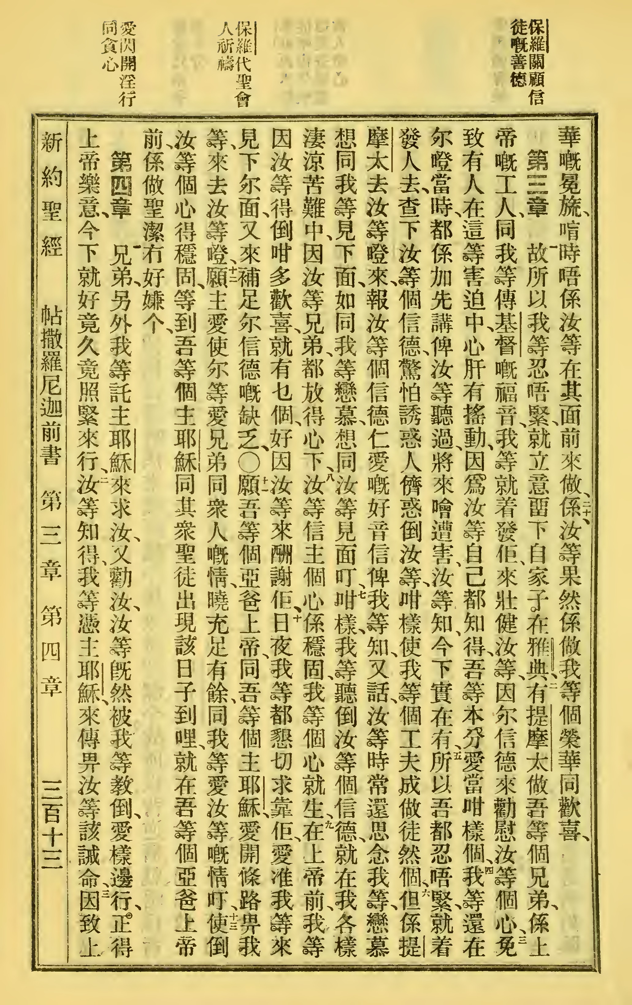 1923年客話新舊約聖經漢字版 帖撒羅尼迦前書 2 章 20 節到 4 章 2 節