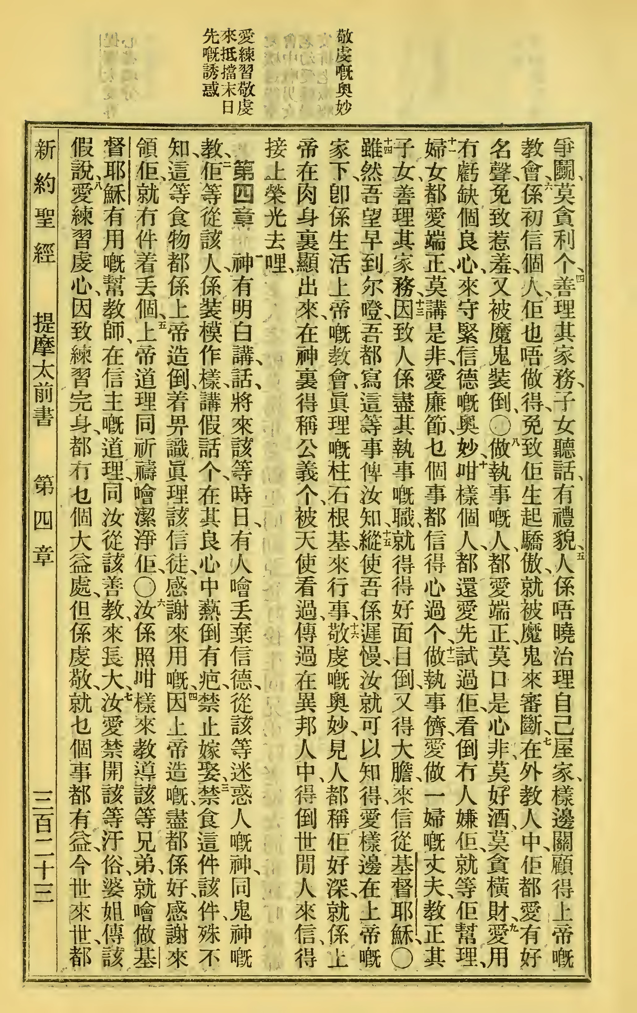 1923年客話新舊約聖經漢字版 提摩太前書 3 章 4 節到 4 章 8 節
