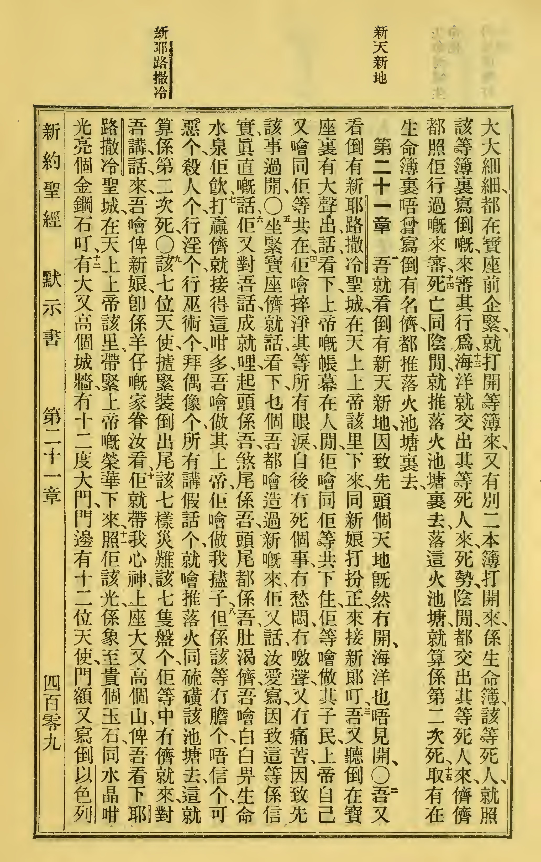 1923年客話新舊約聖經漢字版 啟示錄 20 章 12 節到 21 章 12 節