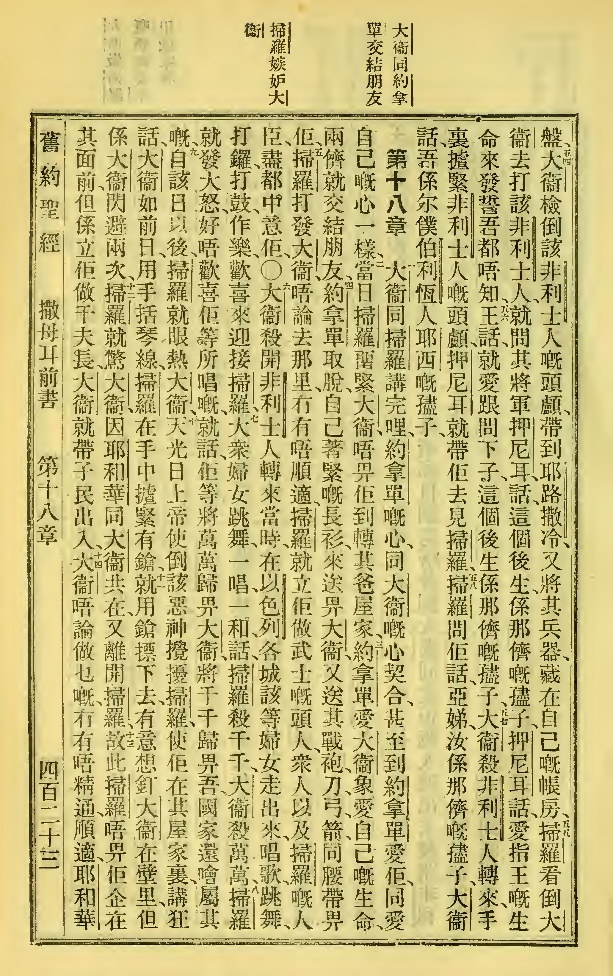 1923年客話新舊約聖經漢字版 撒母耳記上 17 章 54 節到 18 章 14 節