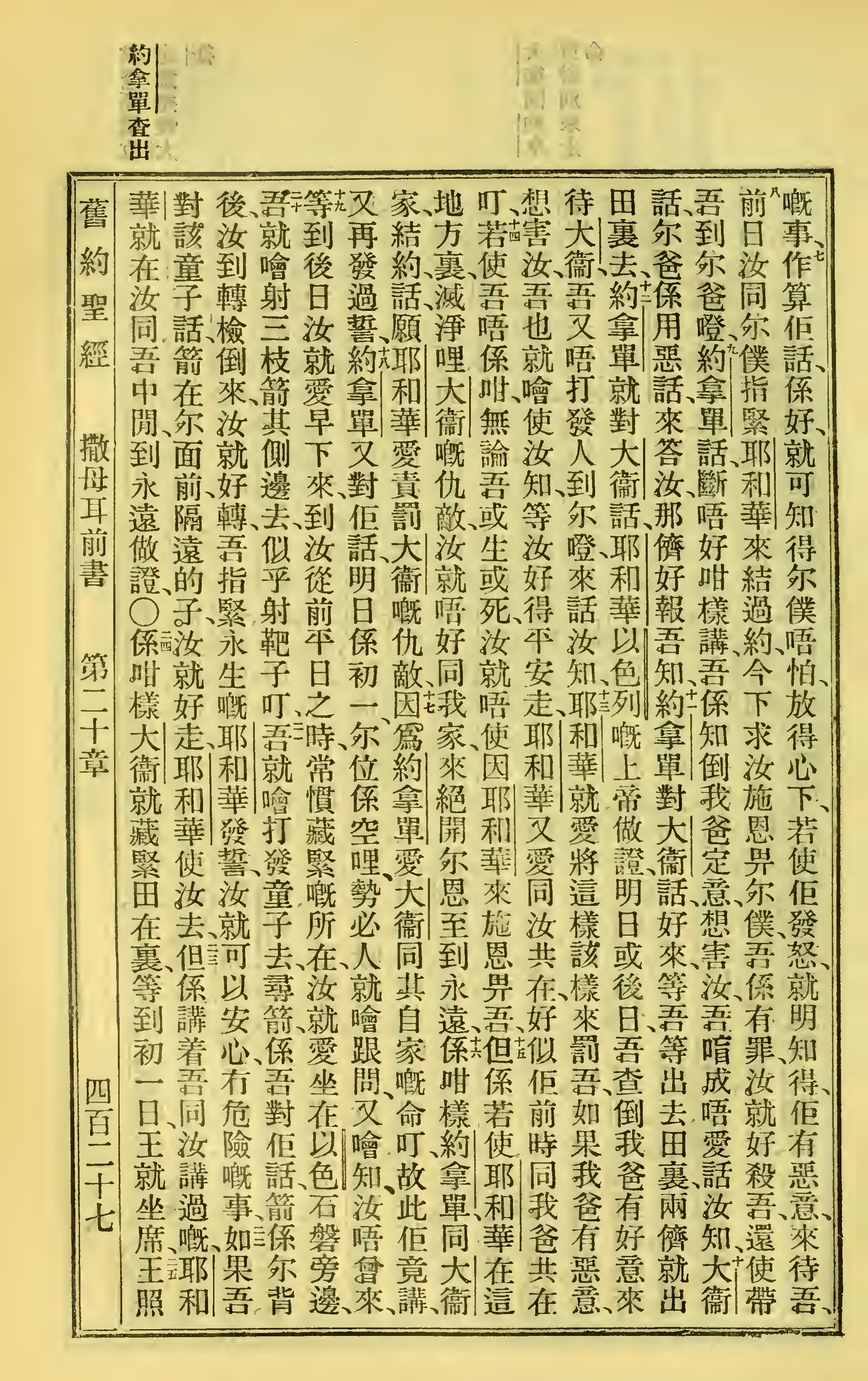 1923年客話新舊約聖經漢字版 撒母耳記上 20 章 7 節到 20 章 24 節