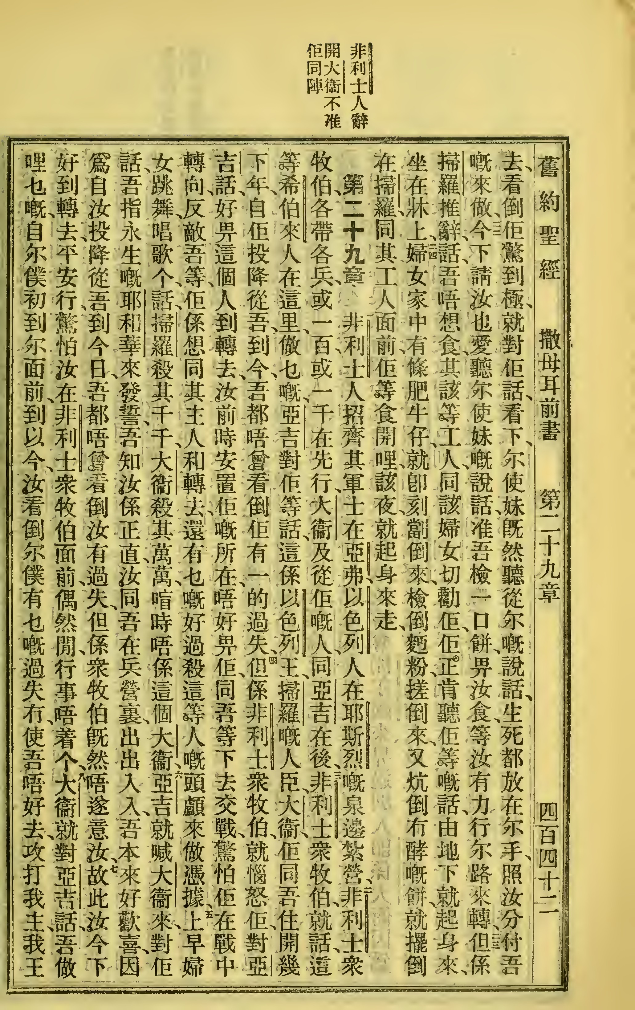 1923年客話新舊約聖經漢字版 撒母耳記上 28 章 21 節到 29 章 8 節