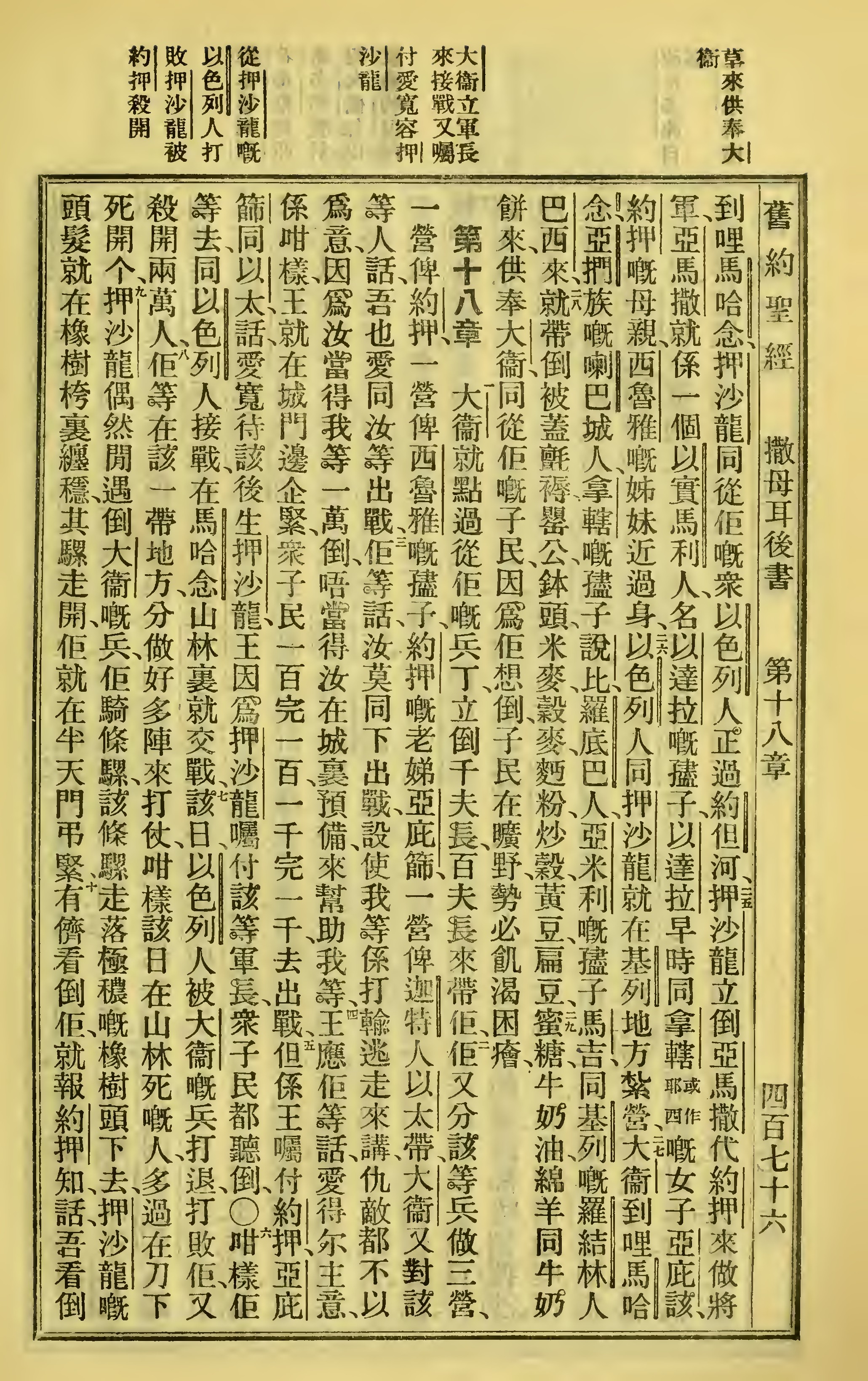 1923年客話新舊約聖經漢字版 撒母耳記下 17 章 24 節到 18 章 10 節