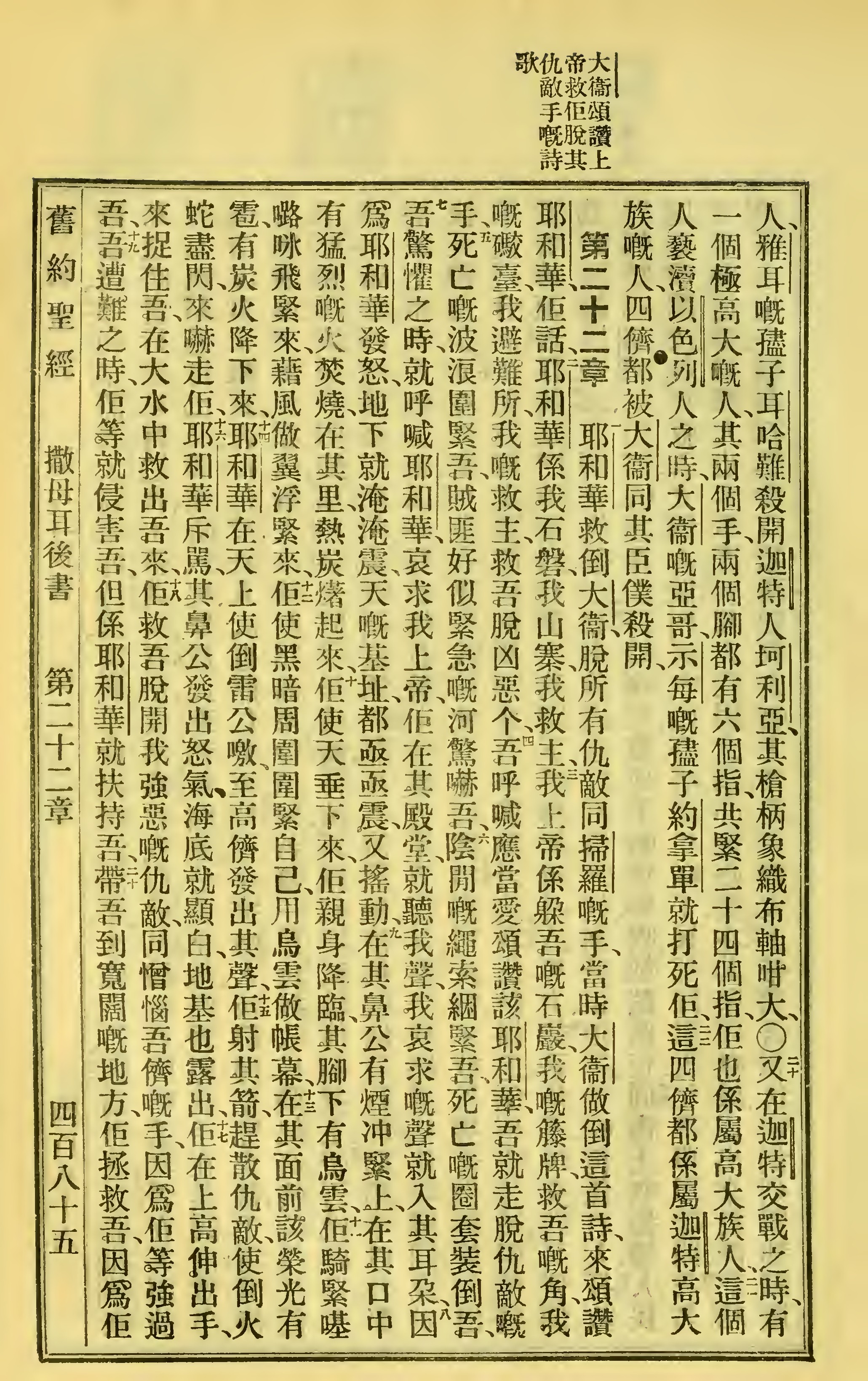 1923年客話新舊約聖經漢字版 撒母耳記下 21 章 19 節到 22 章 20 節