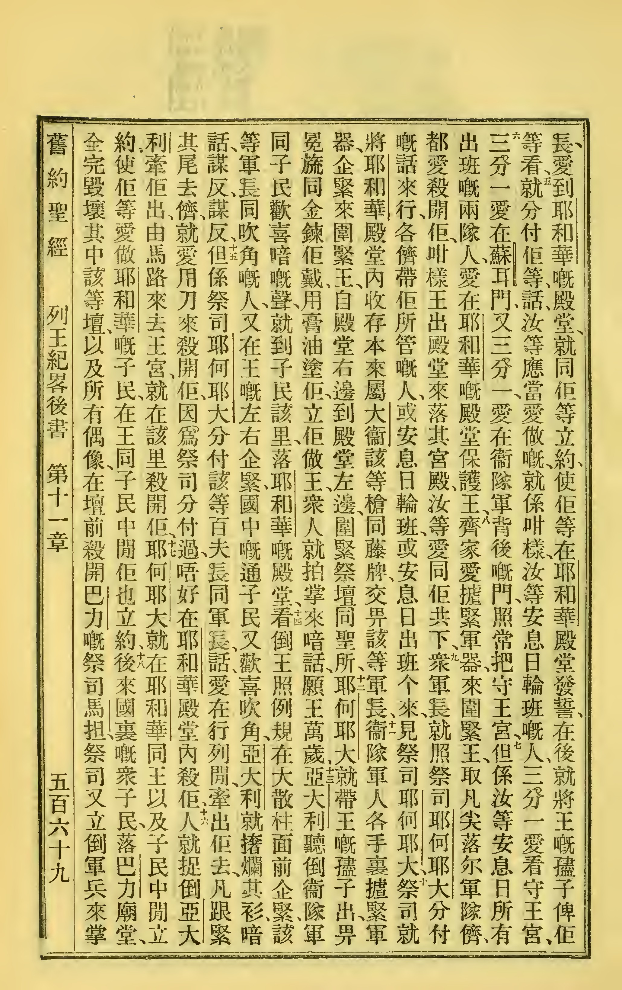 1923年客話新舊約聖經漢字版 列王紀下 11 章 4 節到 11 章 18 節
