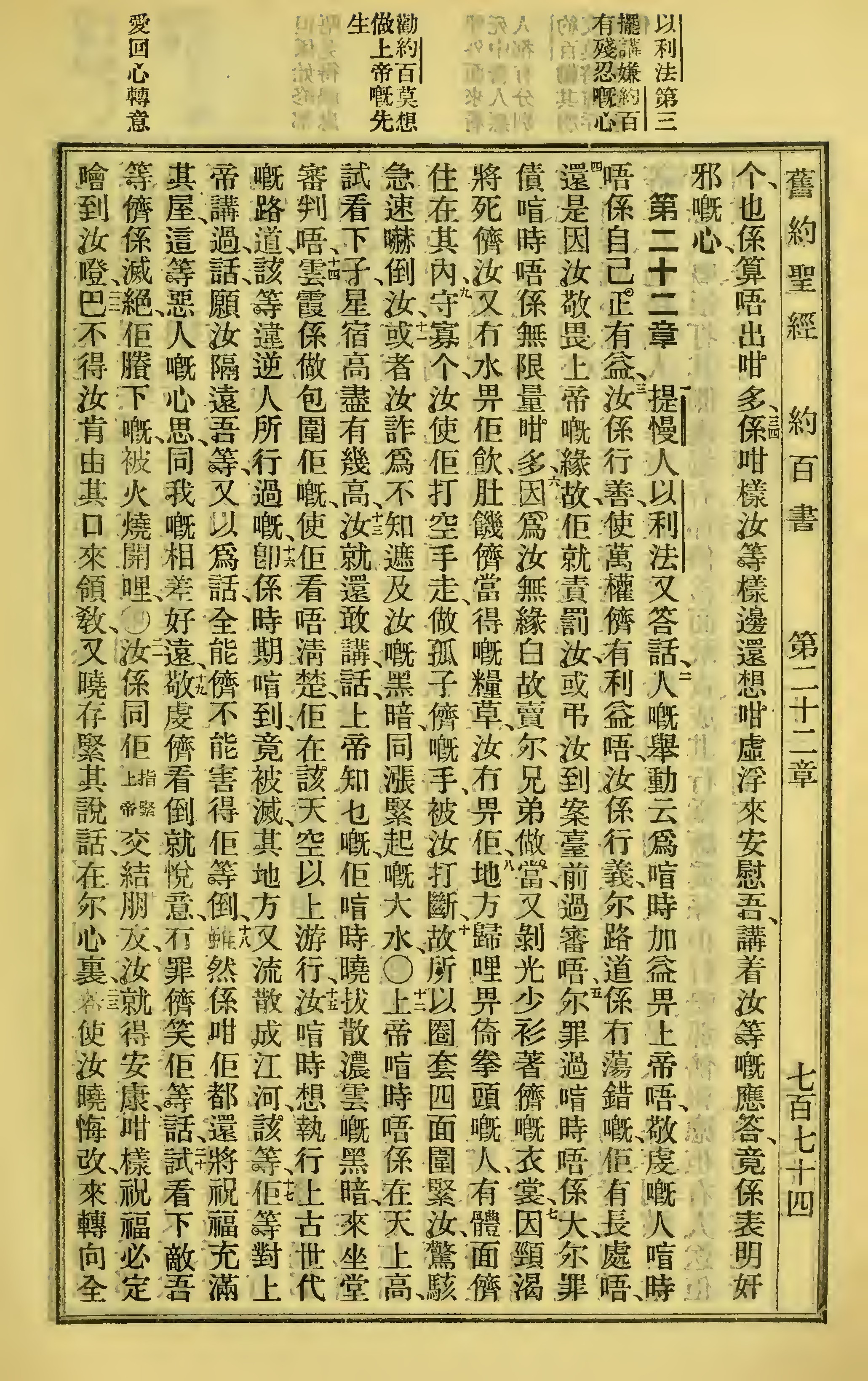 1923年客話新舊約聖經漢字版 約伯記 21 章 34 節到 22 章 22 節