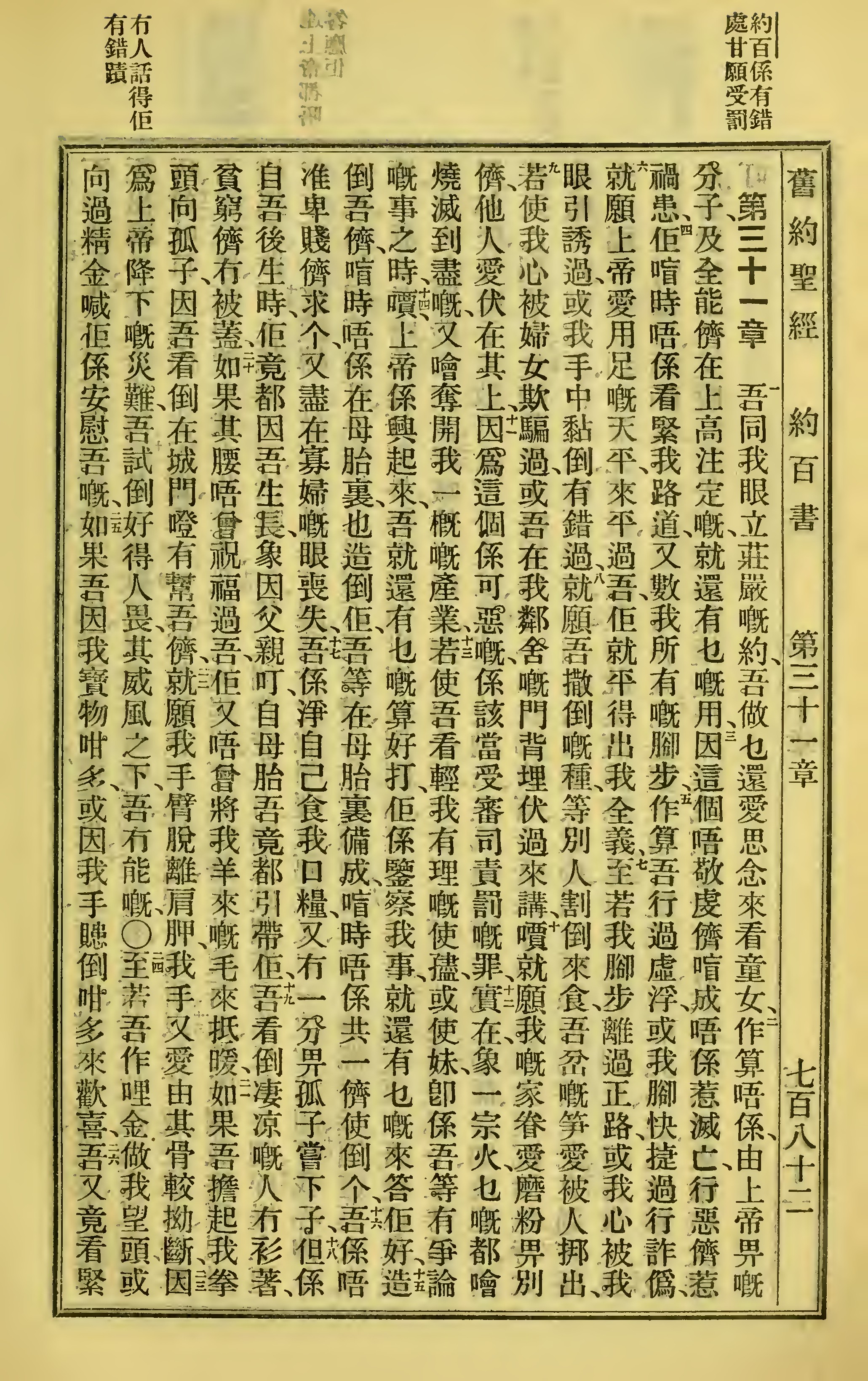 1923年客話新舊約聖經漢字版 約伯記 31 章 1 節到 31 章 25 節