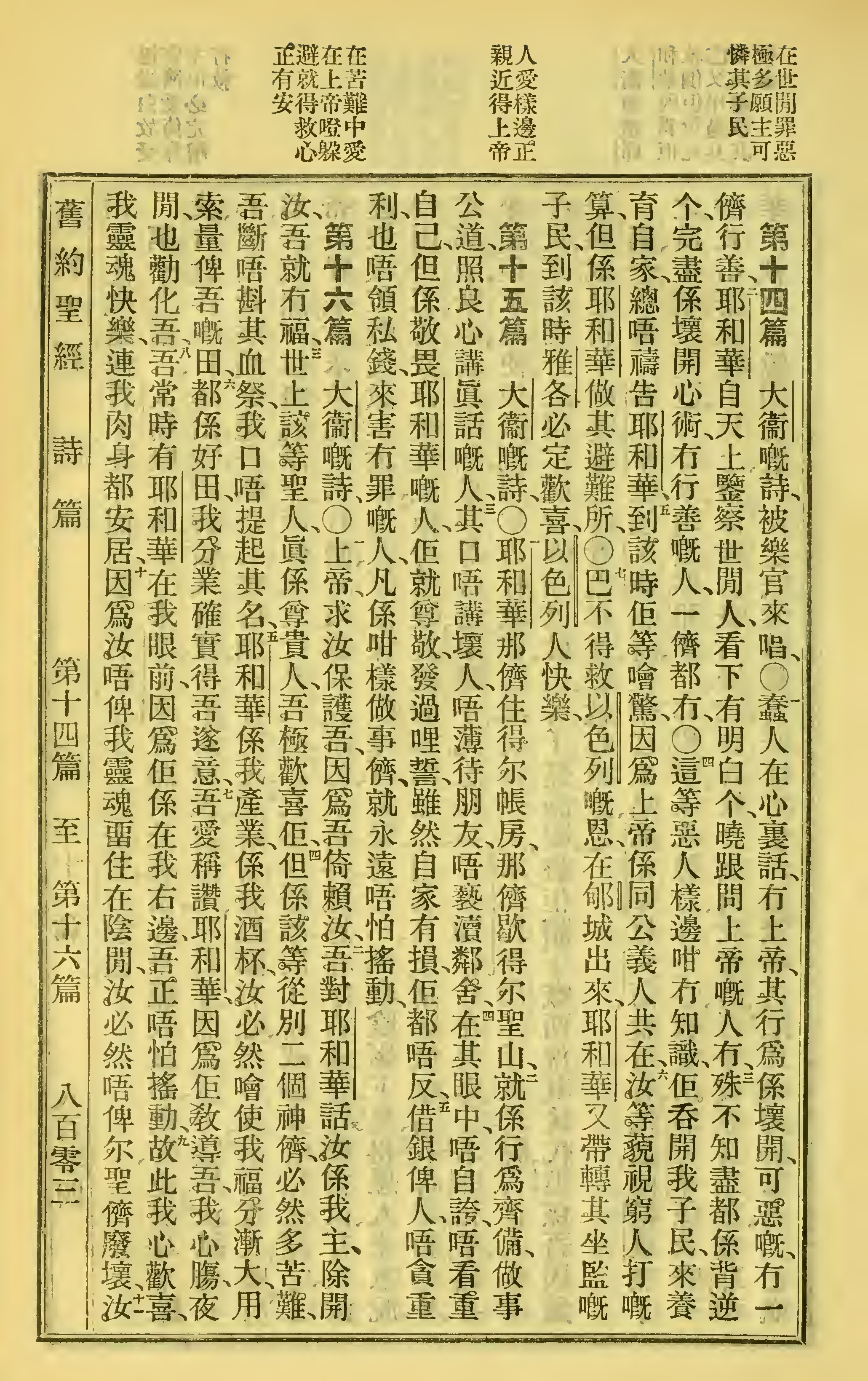 1923年客話新舊約聖經漢字版 詩篇 14 章 1 節到 16 章 10 節