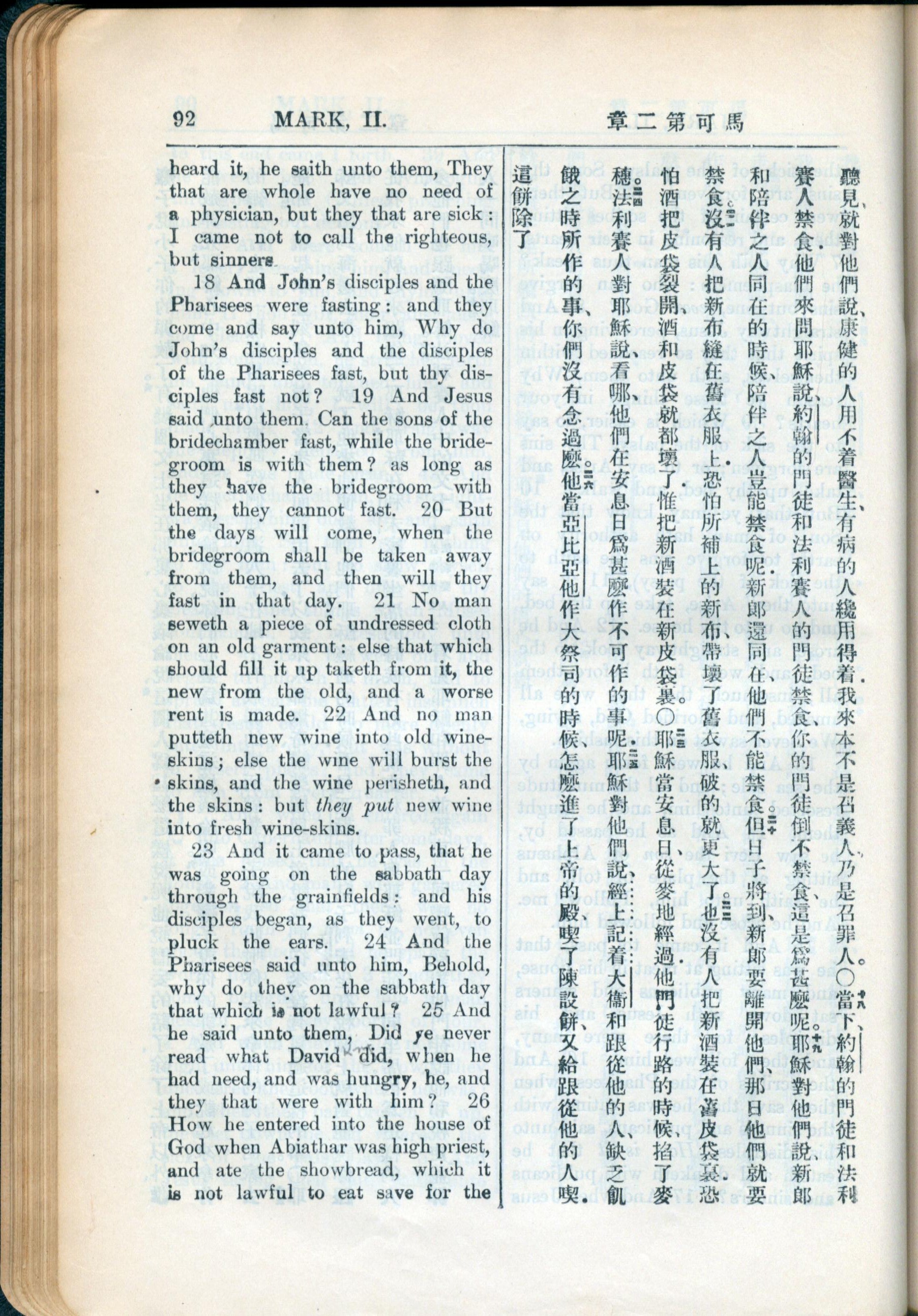 1936年新約全書 馬可福音 2 章 17 節到 2 章 26 節